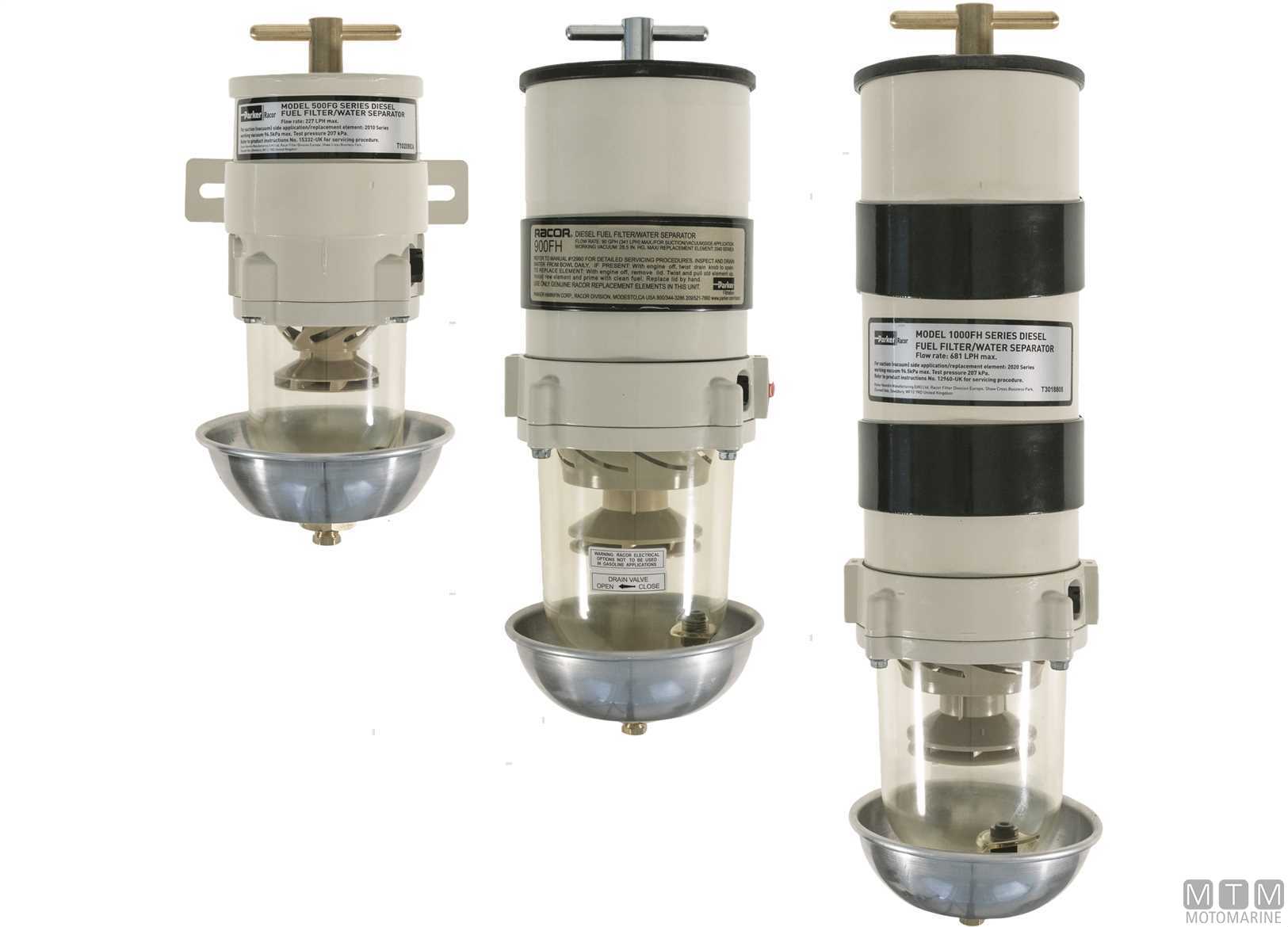 Filtri gasolio Racor di qualità superiore con elementi filtranti multistadio AQUABLOC (99% di efficienza nel separare l'acqua dal gasolio).↵I filtri vengono forniti di serie con cartuccia da 30 micron e scudo di protezione. I raccordi vanno acquistati a parte. ↵ ↵Possono sostituire i filtri Griffin GTB-S4MA.