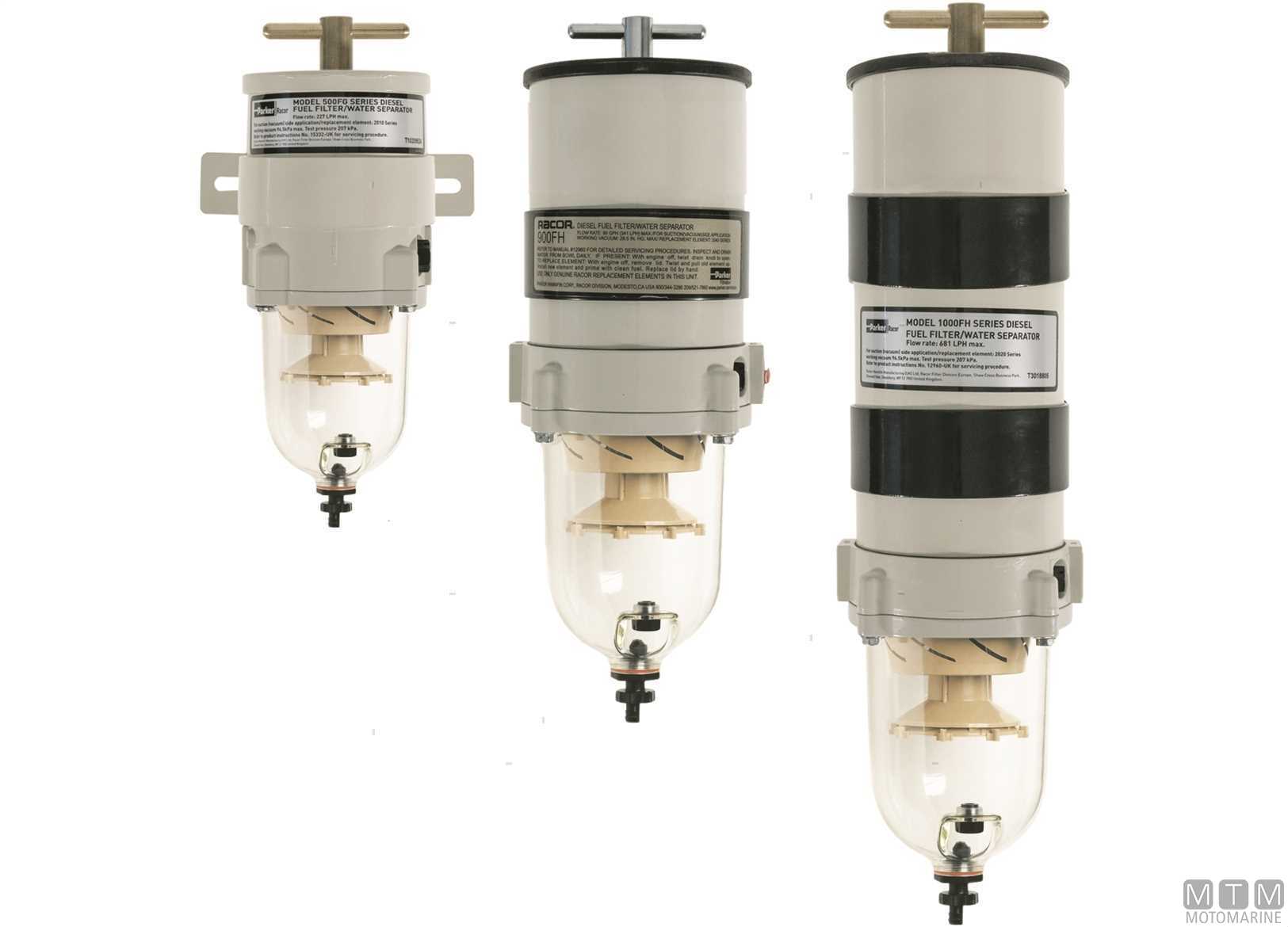 Filtri gasolio Racor di qualità superiore con elementi filtranti multistadio AQUABLOC (99% di efficienza nel separare l'acqua dal gasolio).↵I filtri vengono forniti di serie con cartuccia da 30 micron e scudo di protezione. I raccordi vanno acquistati a parte. ↵ ↵Possono sostituire i filtri Griffin GTB-S4MA.