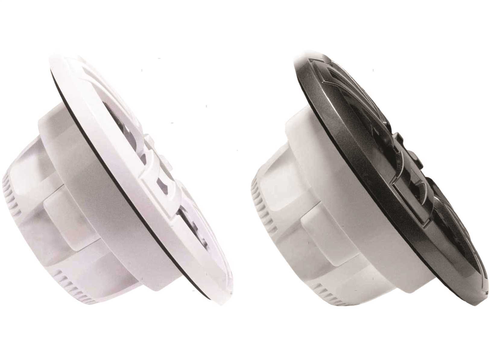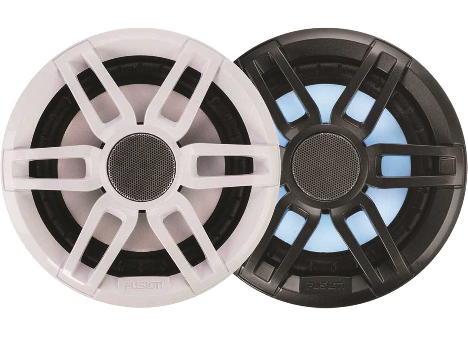 Coppia di altoparlanti marini Fusion XS a due vie impermeabili IP65. Tecnologia a cono curvato con tweeter Aluminum Dome. Forniti con griglia bianca e grigia. Dotati di luce LED RGB che può essere controllata dal telecomando opzionale.