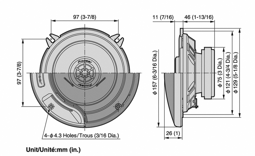 Coppia diffusori per uso interno, coassialia 2 vie (Tweeter+Woofer), Ø mm. 130,risp. freq. 40-25.000 Hz, sens. 89 dB,potenza max. 130W, impedenza 4 Ohm