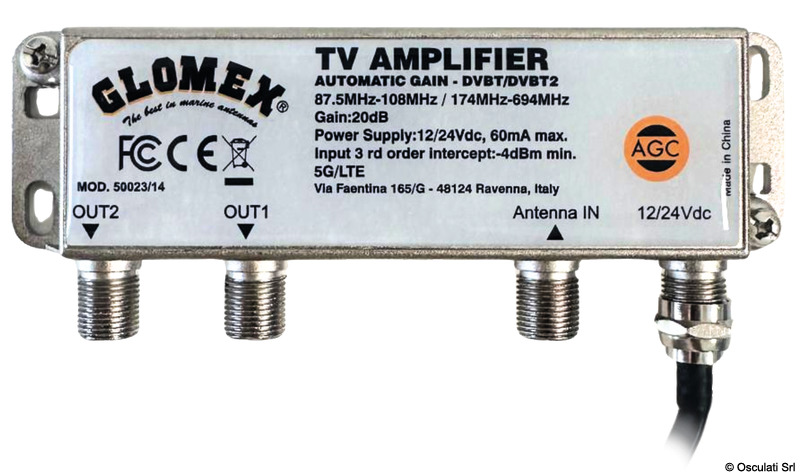 Progettata con look simile a weBBoat Lite. Dati tecnici: - impedenza 75 Ω; - frequenza 87.5/774 mHz; - guadagno 20 dB (automatico); - consumo 60 mA; - max 2 TV abbinabili; - angolo ricezione 360°; - base filetto 1"x14 (si possono usare tutte le basi del catalogo).