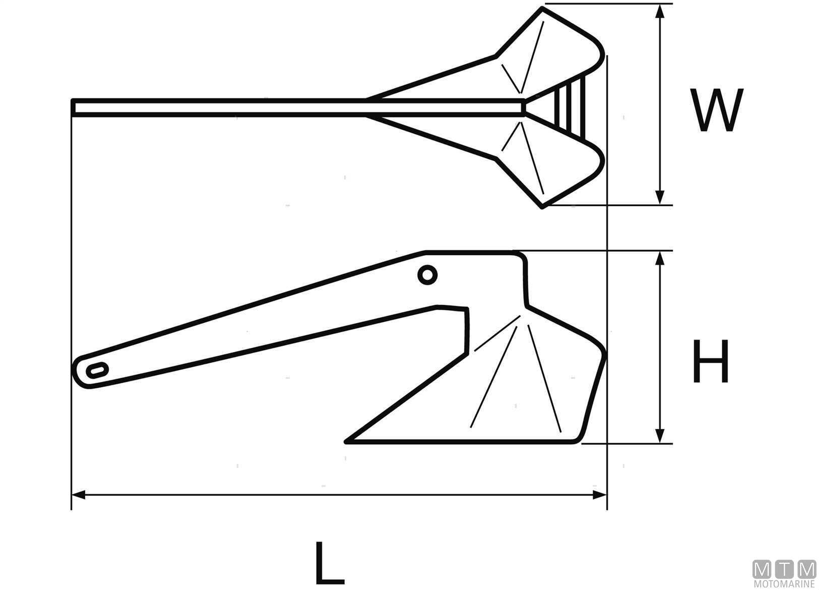 Ancora in Acciaio speciale zincato a penetrazione rapida per qualsiasi tipo di fondo adatta per tutte le imbarcazioni. Grazie al roll-bar e alla distribuzione del peso l'ancora trova immediatamente l'angolo ottimale di penetrazione, mentre la grande superficie concava garantisce una tenuta sicura con qualsiasi condizione di mare e vento. Peso: 70 Kg.