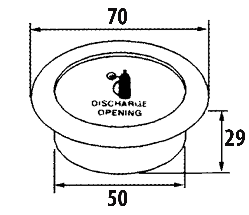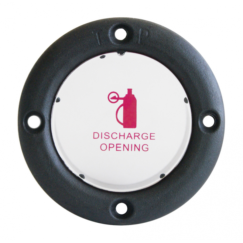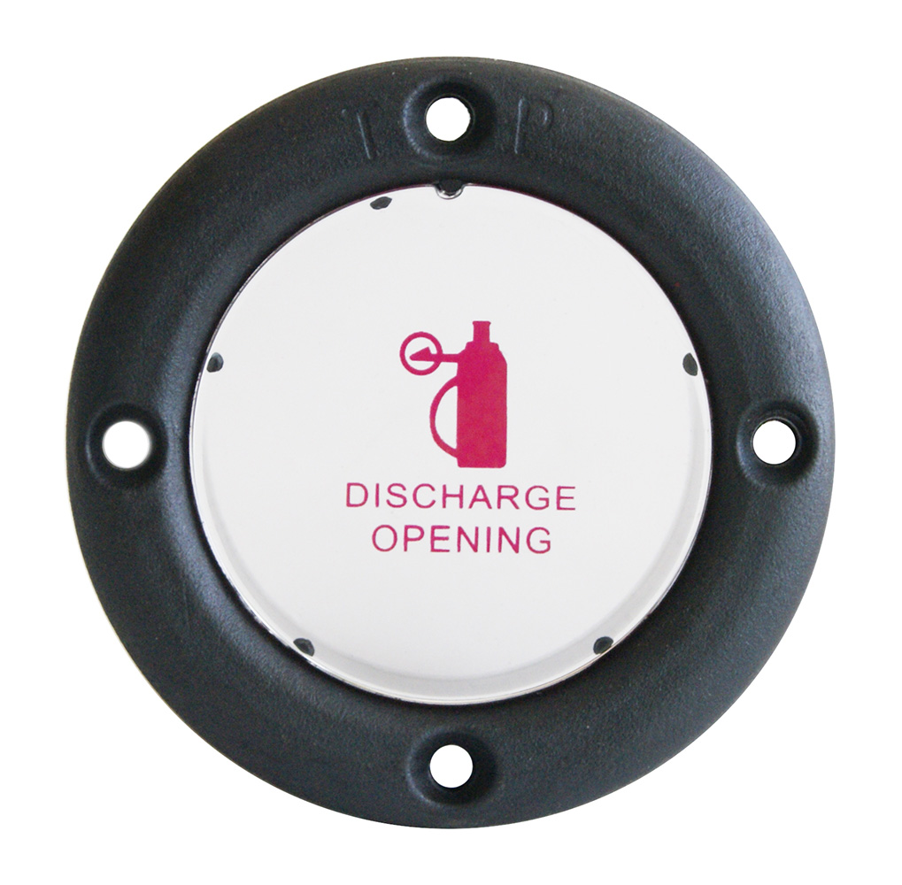 Anello anti incendio in nylon e lente acrilica con copertura in acciaio inox. Montato sul vano motore in caso di incendio permette di entrare con l’estintore senza doverlo aprire, dim. Ø esterno mm. 70, Ø foro mm. 50, incasso mm.29