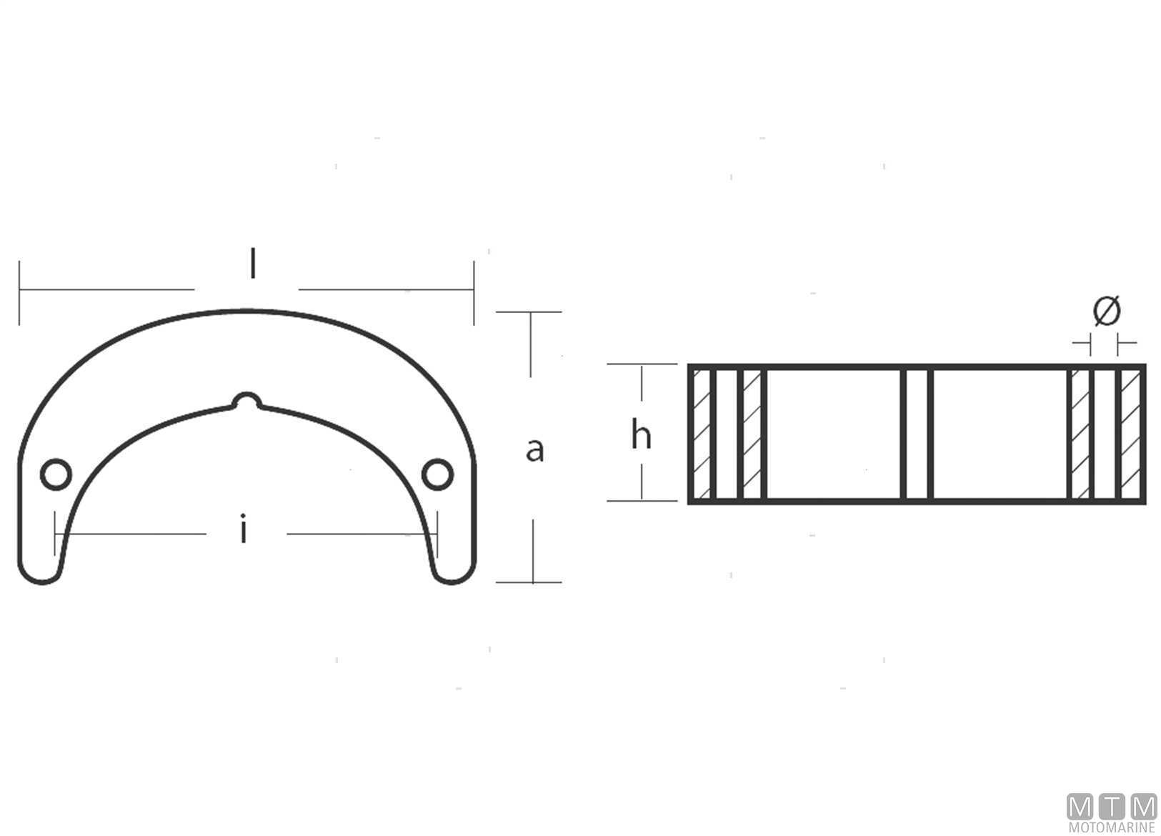 Mezzo collare anodo per motori Johnson/Evinrude 35<>75 vecchio tipo.↵Zn = Zinco↵Al = Alluminio