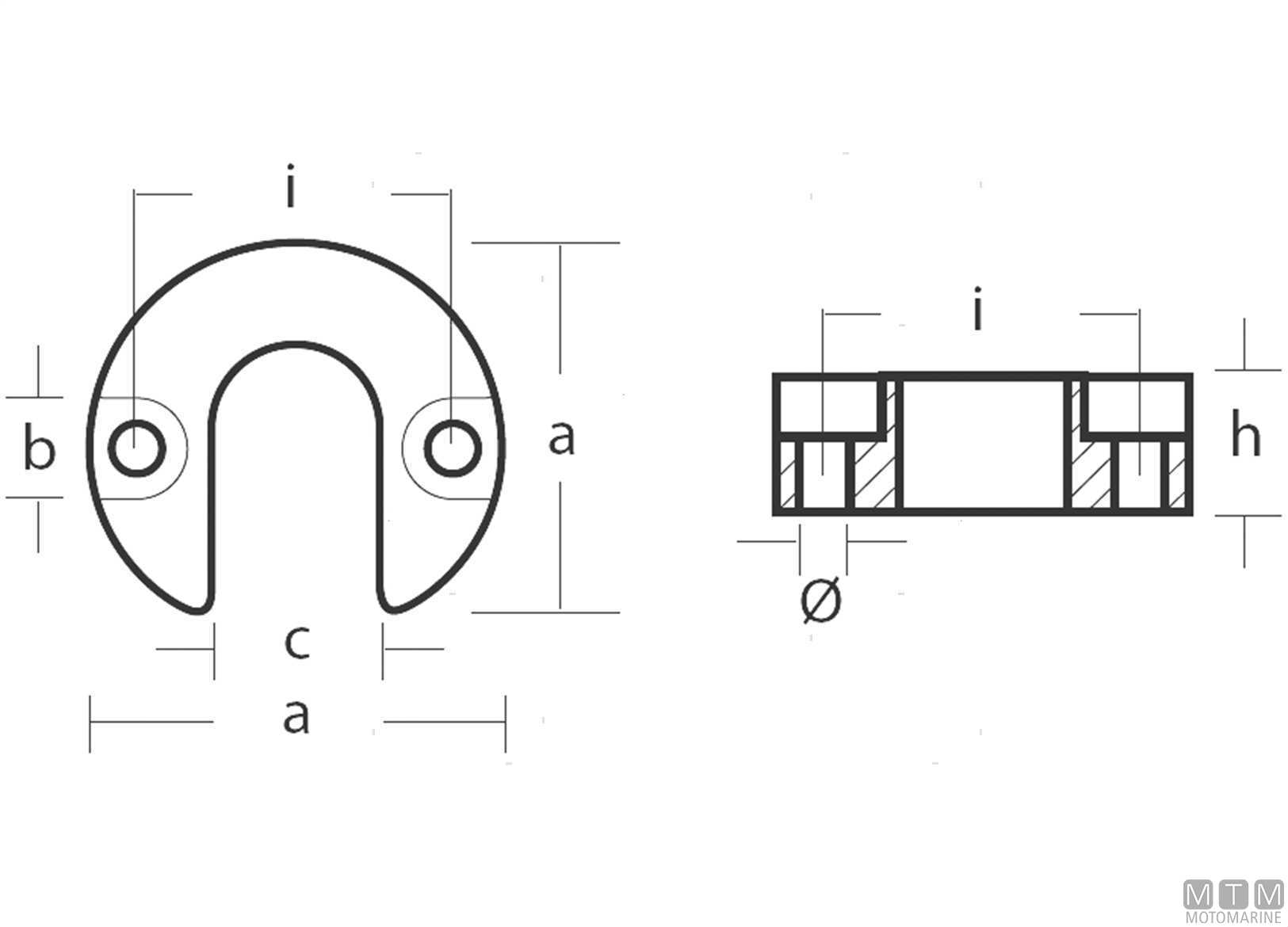 Collare anodo per motori Mercruiser Alpha.↵Zn = Zinco ↵Al = Alluminio