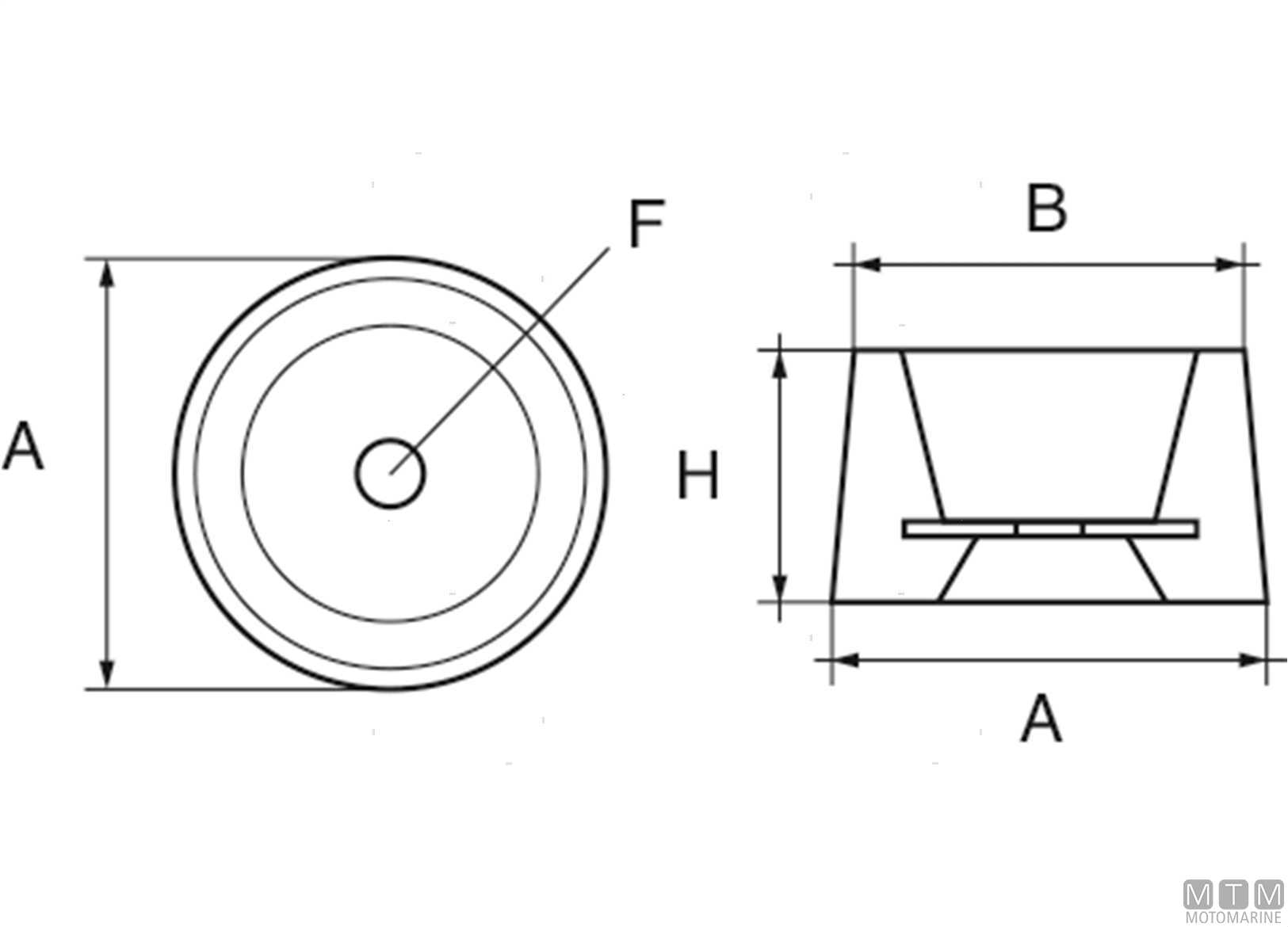 Anodo a flangia conica da poppa. ↵Zn = Zinco ↵Al = Alluminio