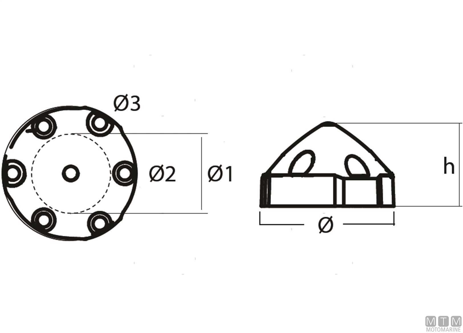 Anodo a ogiva 6 fori per eliche Max-Prop.