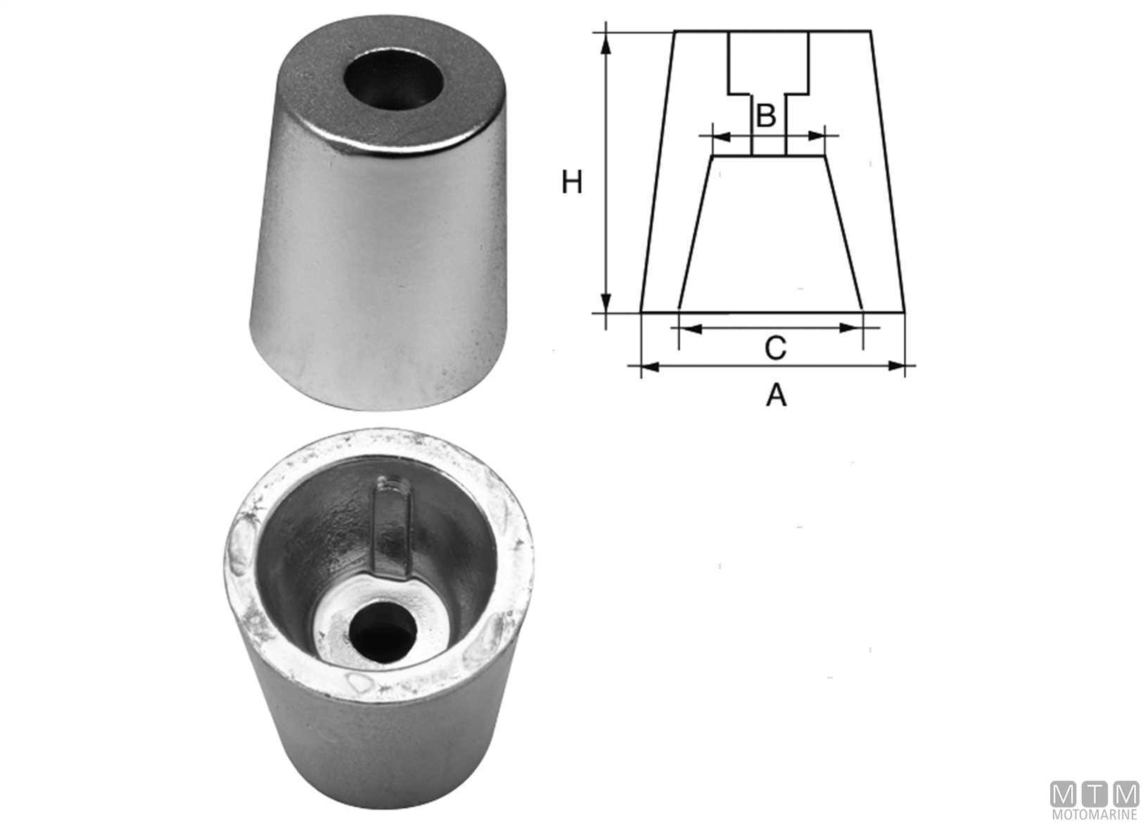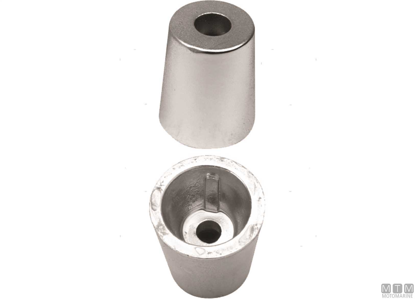 Anodi Martyr in lega di Alluminio M2 a ogiva con innesto conico.↵• Proteggono il 50% più a lungo di un anodo in zinco↵• Pesano il 50% in meno degli anodi in zinco