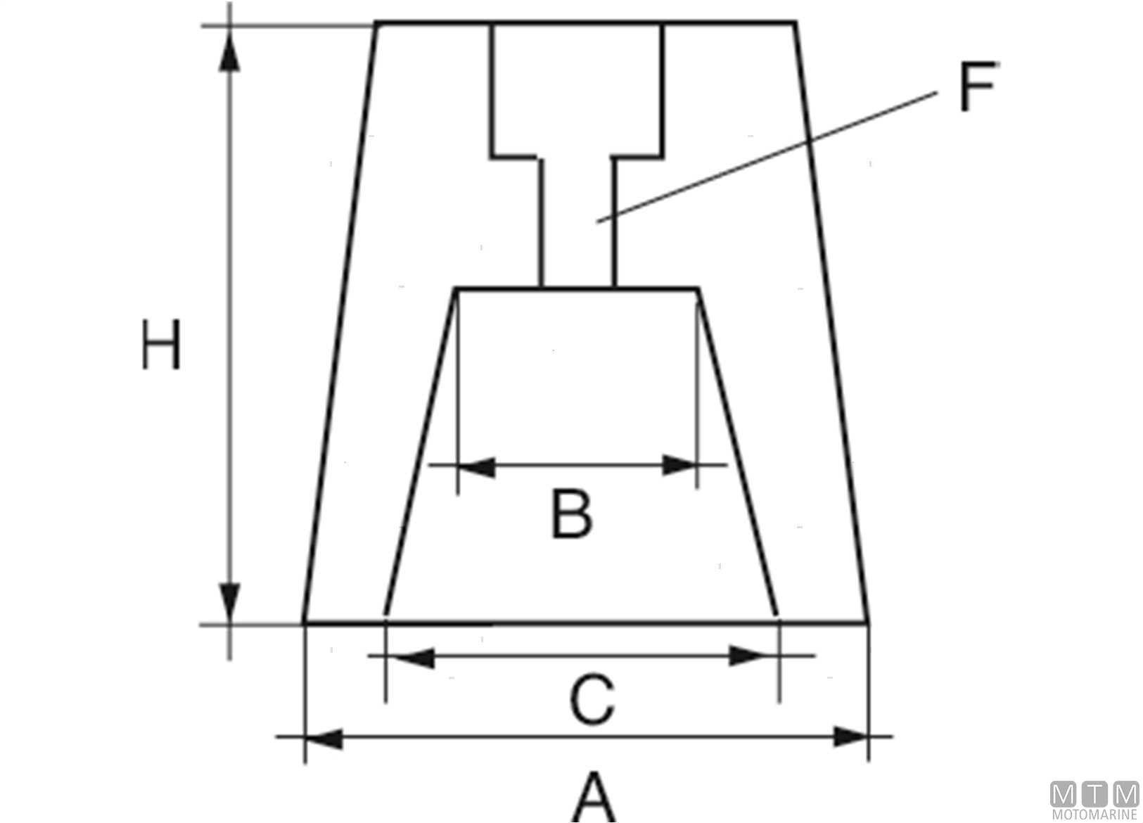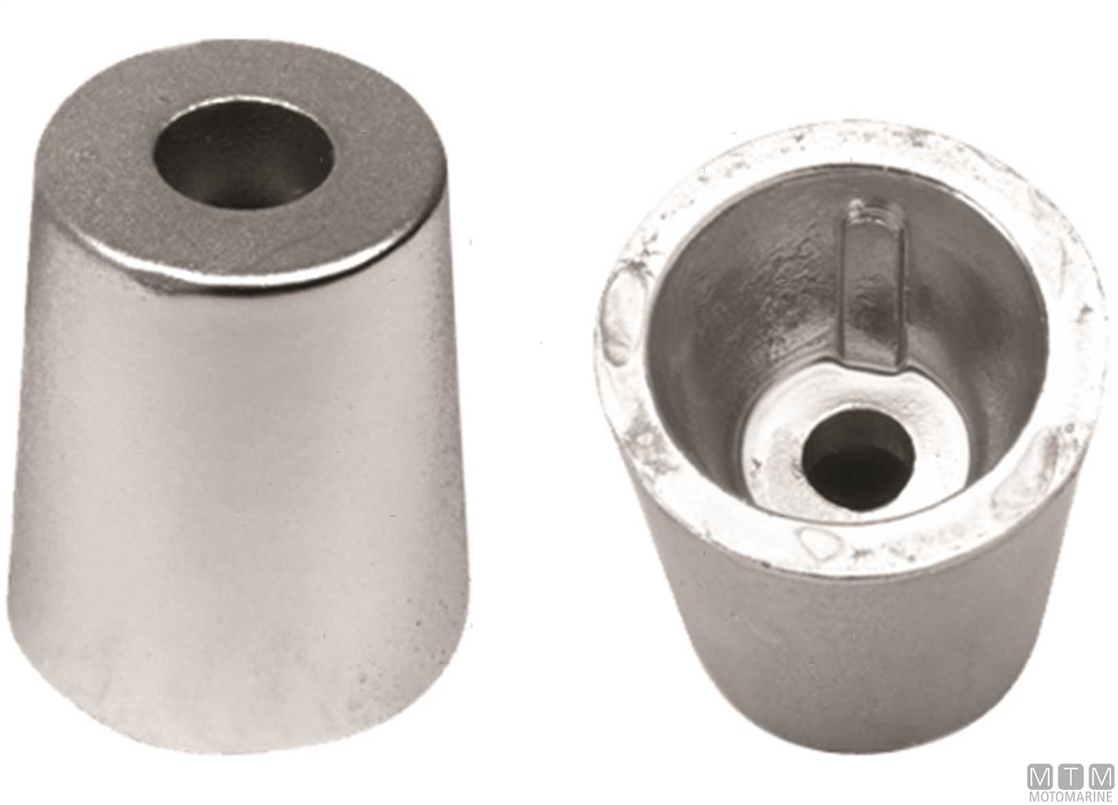 Anodo a ogiva con innesto conico per assi portaelica.