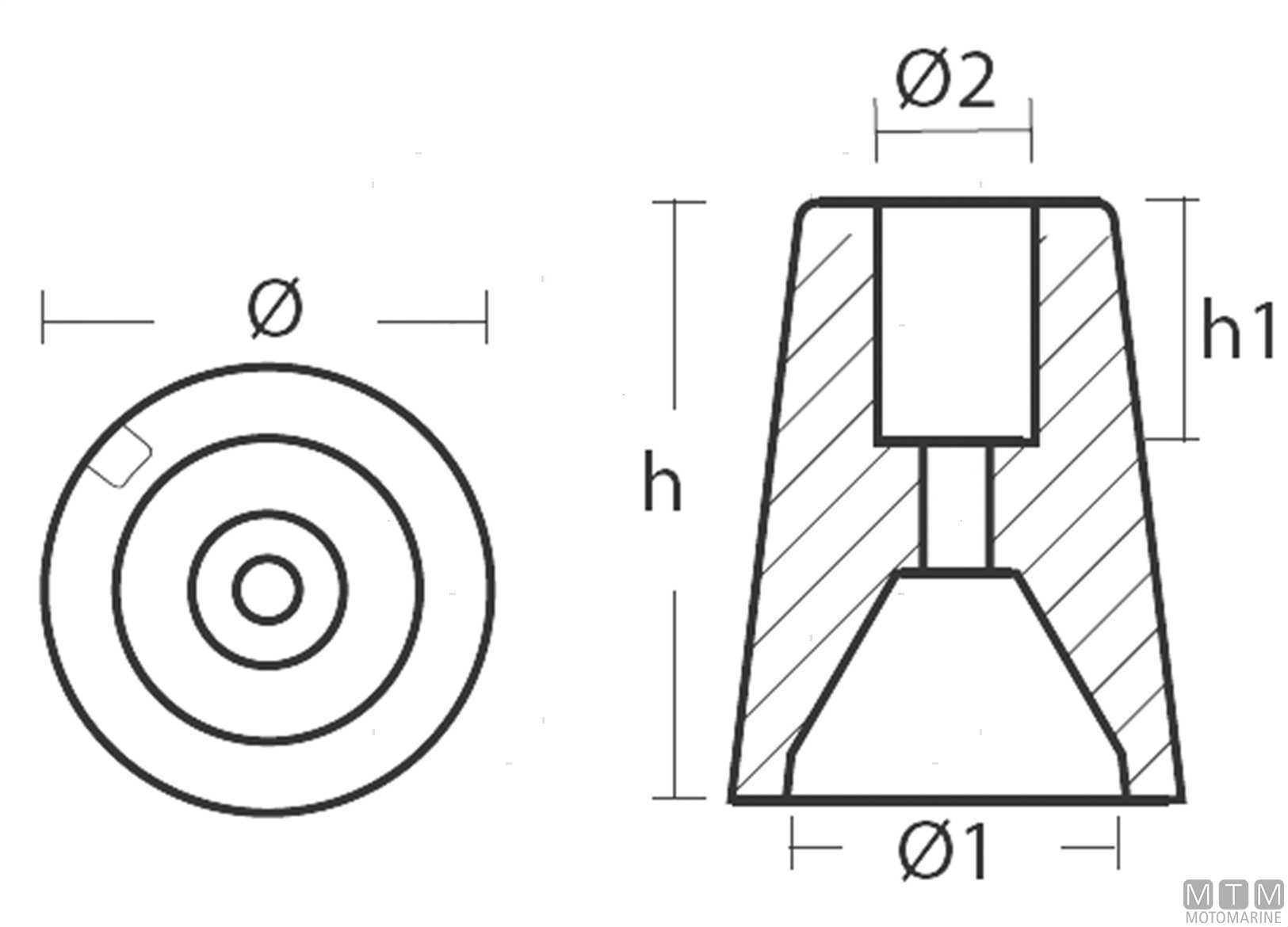 Anodo a ogiva Ferretti con innesto conico per assi portaelica.