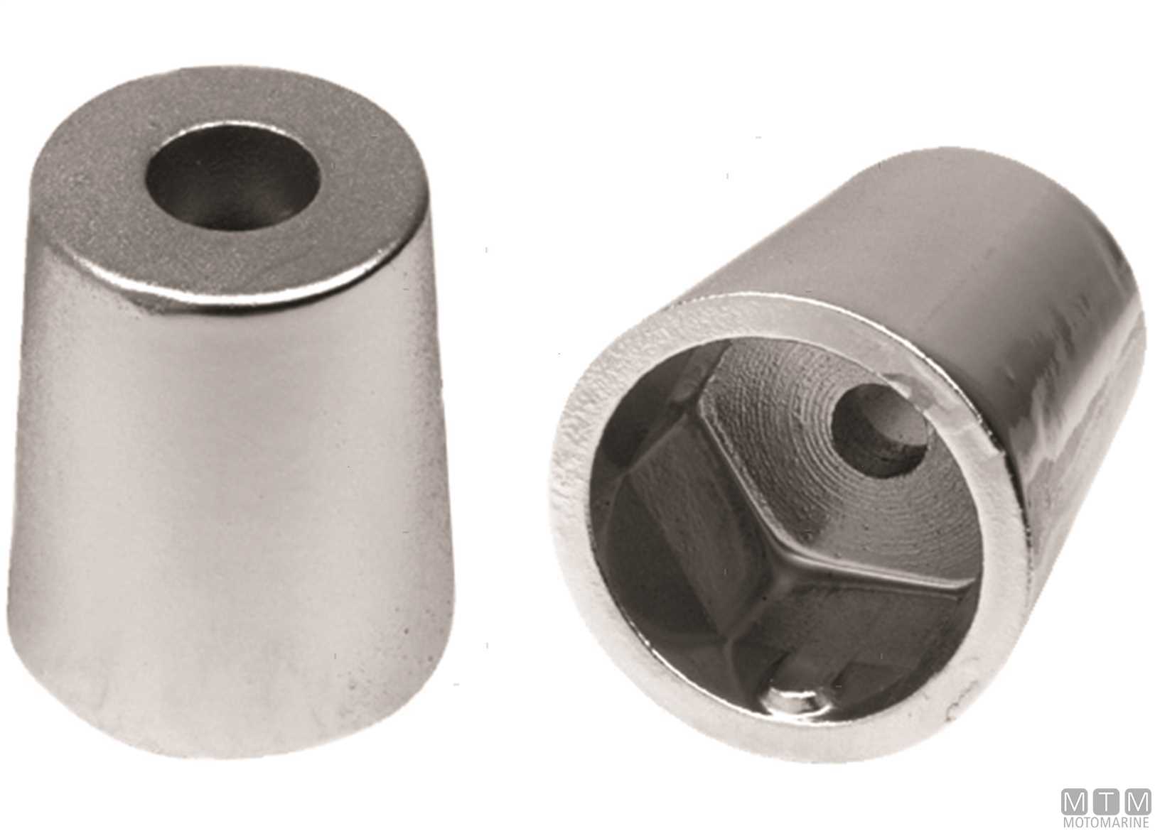 Anodo a ogiva con innesto conico esagonale per assi portaelica.