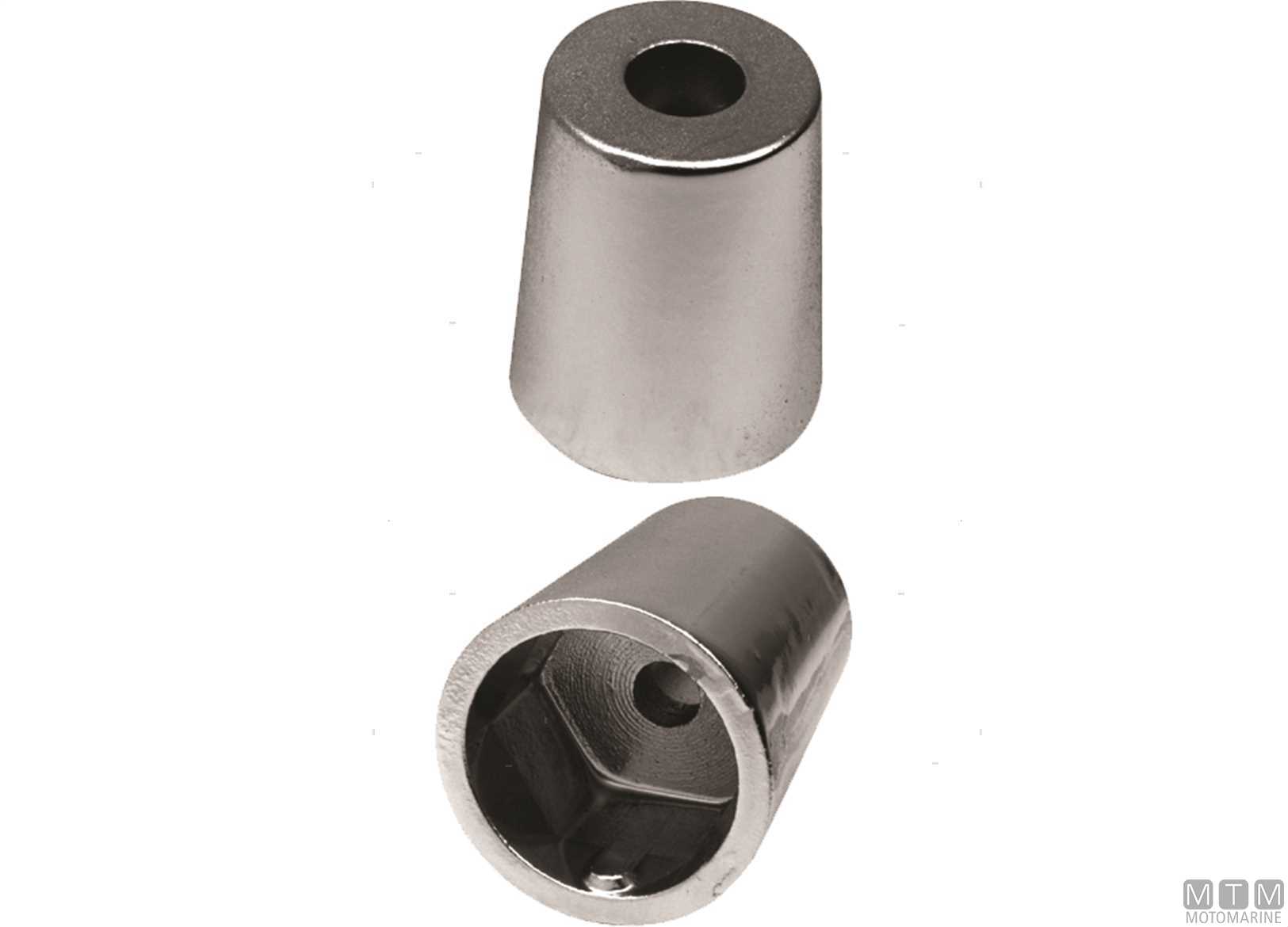 Anodi Martyr in lega di Alluminio M2 a ogiva con innesto conico esagonale.↵ • Proteggono il 50% più a lungo di un anodo in zinco↵• Pesano il 50% in meno degli anodi in zinco