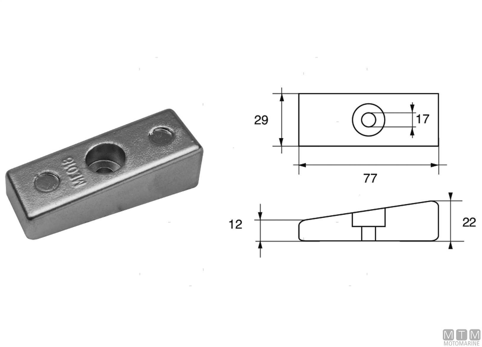 Piastrina gambo anodo per motori Mercury 30<>300 - Optimax - Verado.↵Zn = Zinco ↵Al = Alluminio