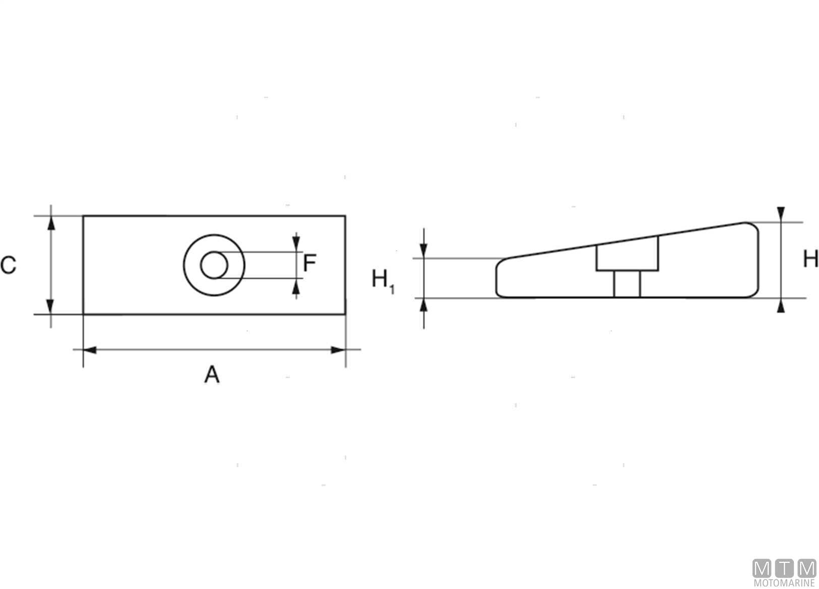Piastrina gambo anodo per motori Mercury 30<>300 - Optimax - Verado.↵Zn = Zinco ↵Al = Alluminio