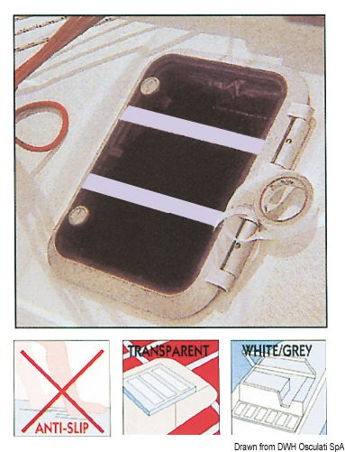 Nastro adesivo antiderapante, garantisce un effetto antisdrucciolo su tutte le superfici dell’imbarcazione senza alterarne l’aspetto estetico. Trasparente per passauomo, bianco per coperta in vetroresina.