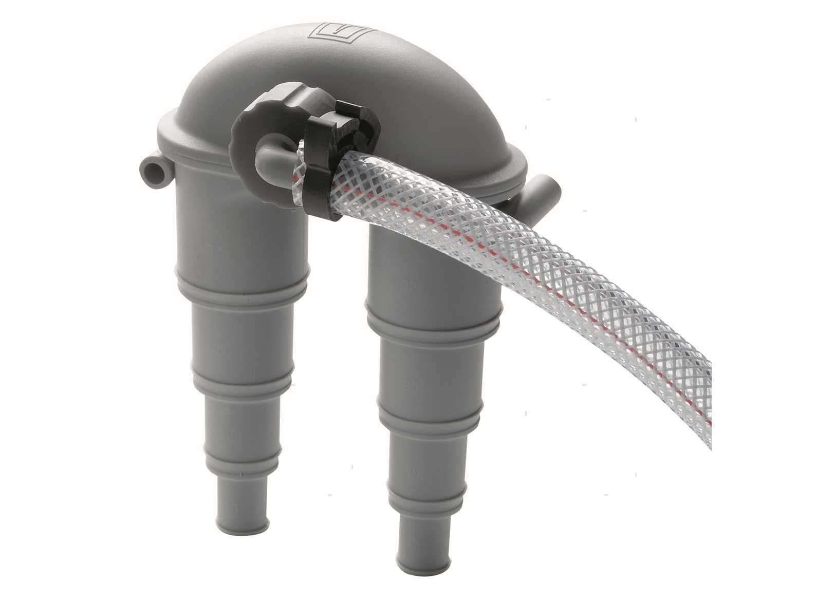 Antisifoni per impianti di scarico sotto la linea di galleggiamento. Con valvola/portagomma ruotabile e smontabile per una facile manutenzione.Se il livello dell'iniezione dell'acqua di raffreddamento nello scarico del motore si trova a meno di 15 cm sopra la linea di galleggiamento oppure sotto la stessa, quando il motore viene spento, l'acqua di raffreddamento può penetrare nell'impianto di scarico e quindi nel motore. Tale pericolo può essere evitato installando un antisifone almeno 40 cm sopra la linea di galleggiamento.