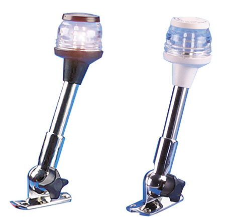 Asta in acciaio inox Ø mm. 19, abbattibile, con fanale a 360°,base mm. 77x39, altezza art. 4081423 mm. 230 art. 4081460 mm. 600 colore nero