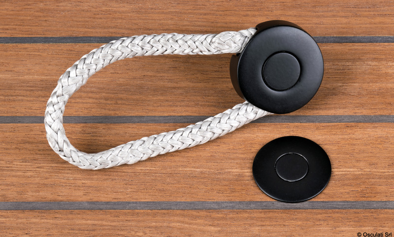 Sistema di aggancio/sgancio rapido che permette di fissare in maniera rapida parabordi, tendalini, ecc. Realizzato in acciaio inox AISI 316. Quando non in uso la base ad incasso rimane a filo. Dotato di anello loop in Dyneema per fissaggio al parabordo/tendalino.