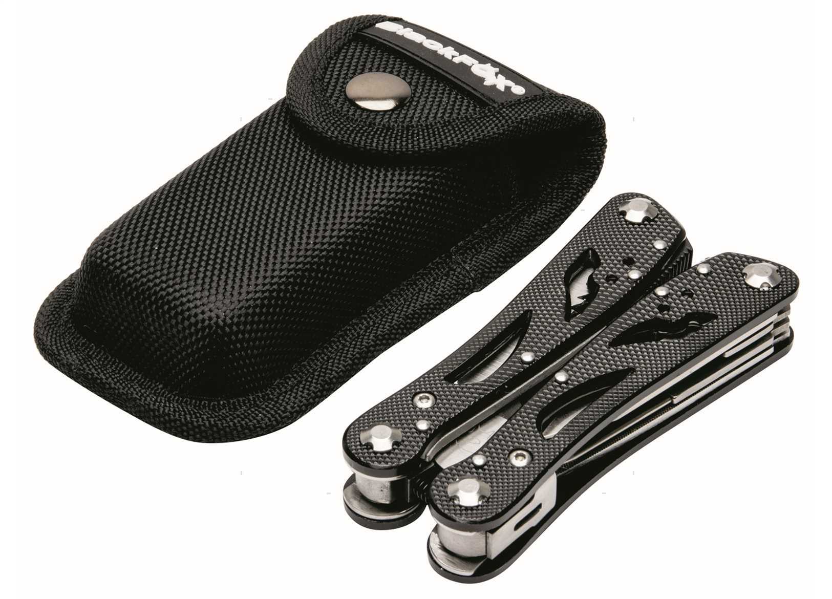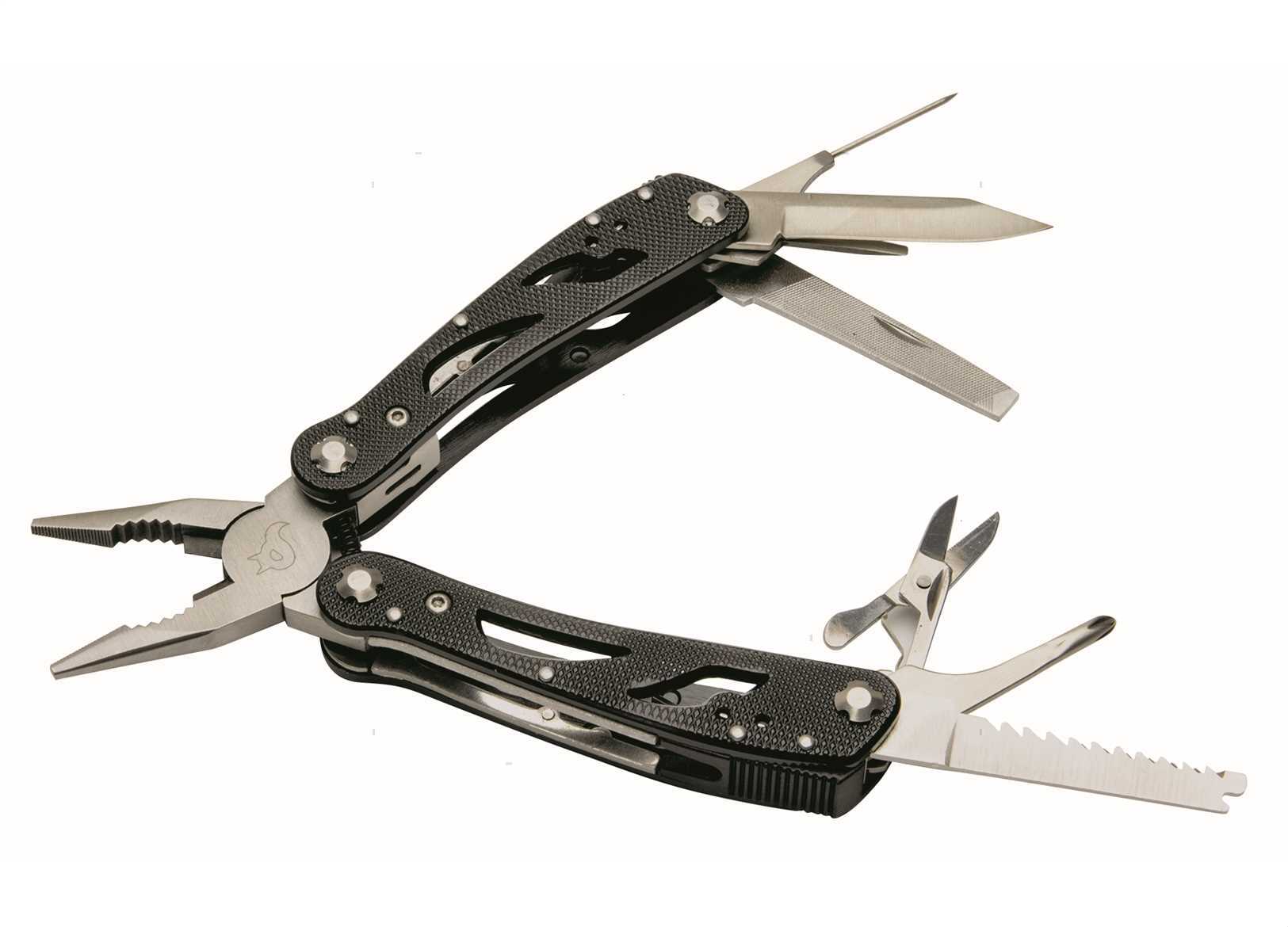 Attrezzo milleusi in Acciaio Inox completo di astuccio. Comprende pinza, coltello, lima, cacciaviti, forbicine, punteruolo, seghetto, etc.