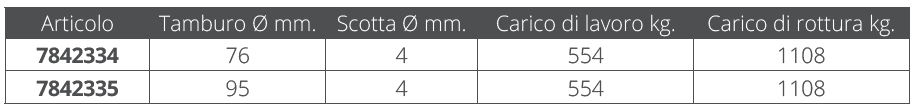 Avvolgitore con tamburo Ø mm.76, max. carico di lavoro kg. 554, carico di rottura kg.1108