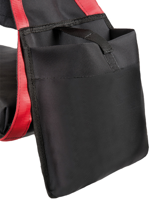 Provvisto di due grandi tasche laterali da 26 x 23 cm. Completo di sacca traspirante per lo stoccaggio.