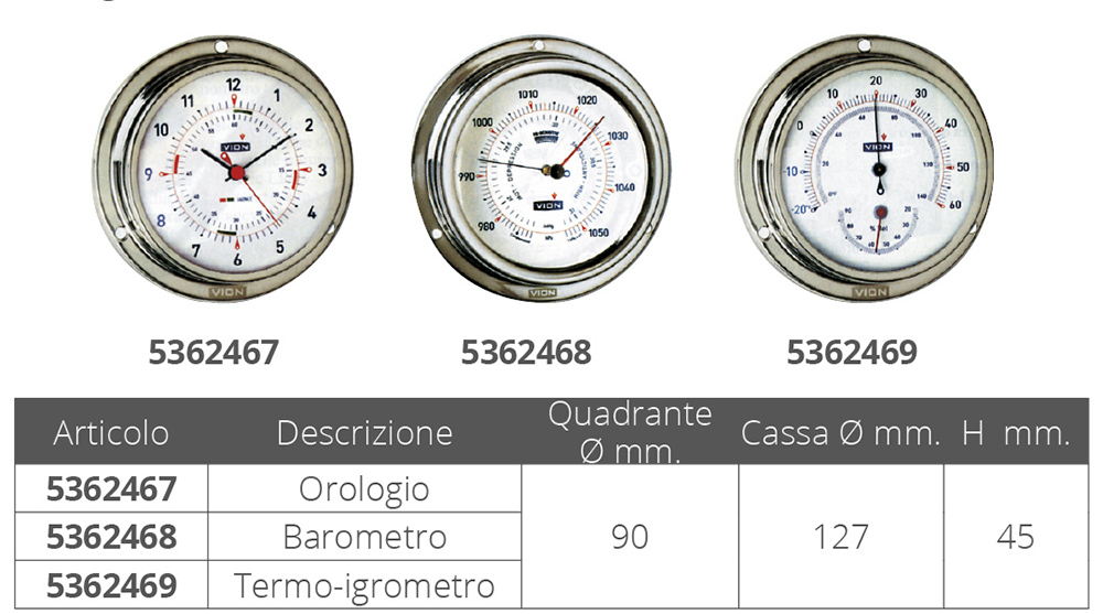 Strumenti di bordo in acciaio inox, quadrante Ø mm. 90, Ø esterno mm. 127 x 45 h