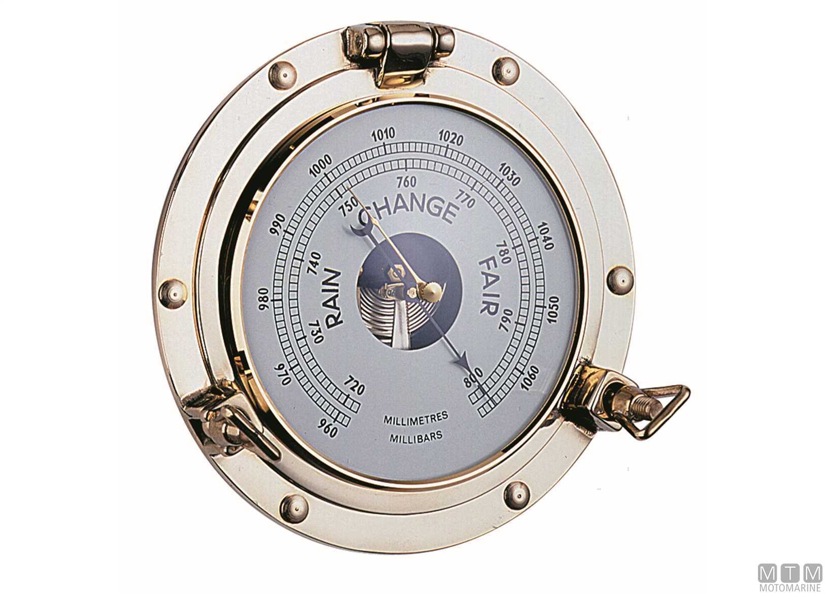 Barometro oppure orologio su oblò in Ottone Lucido.