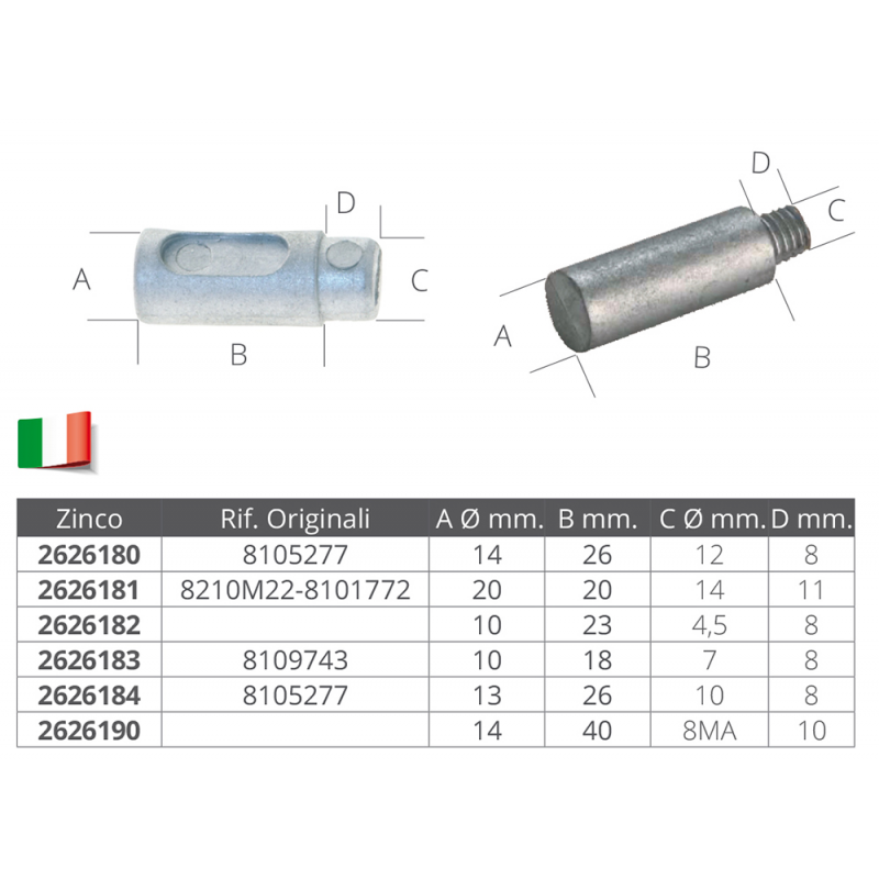 Anodo barrotto aifo-fiat 13x26+7mm zn
