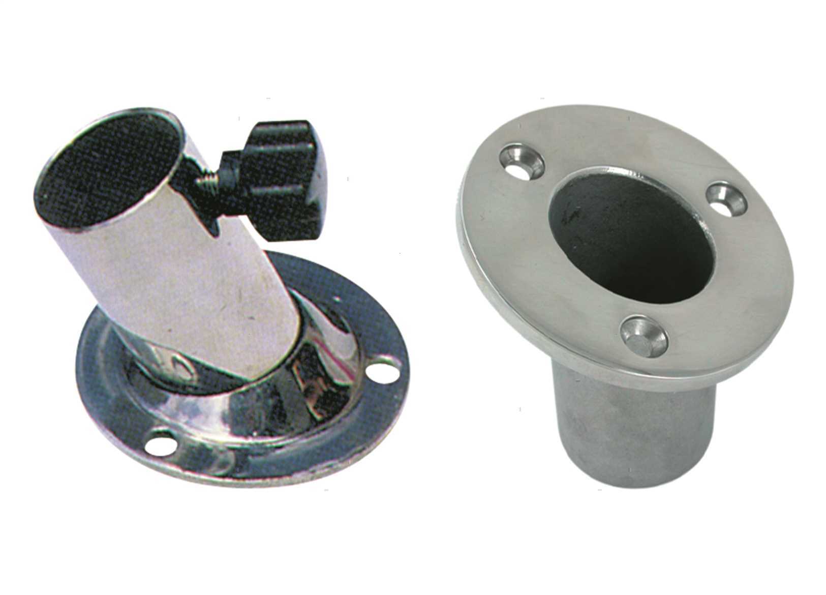 Basi in Acciaio Inox per aste portabandiera. Montaggio standard oppure a incasso. Diametro base 58 mm.