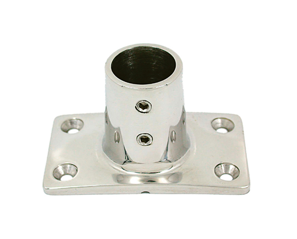 Raccordi microfusi in acciaio inox aisi 316 lucidati a specchio con base rettangolare dritta. Dim. art. 29.28222 base mm. 76x44x43h, art. 29.28225 base mm. 81x48x43h