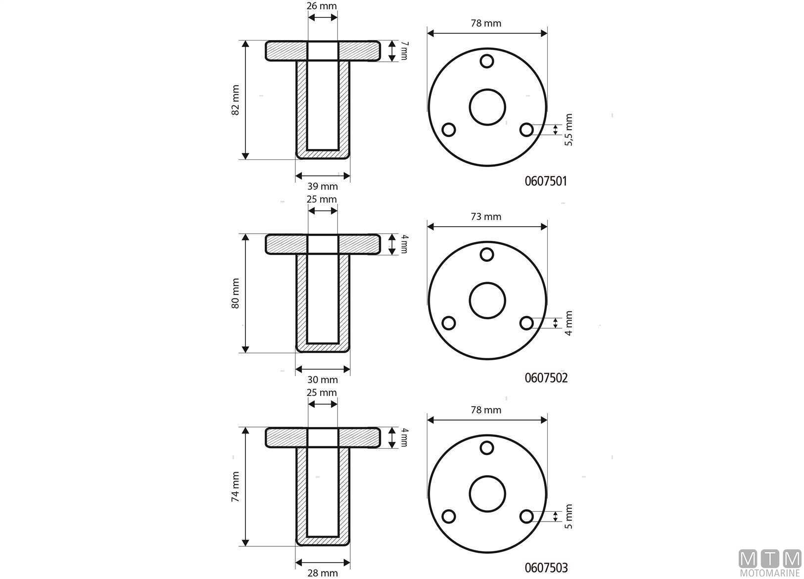 Boccole a incasso per passerelle con perno da 25 mm.