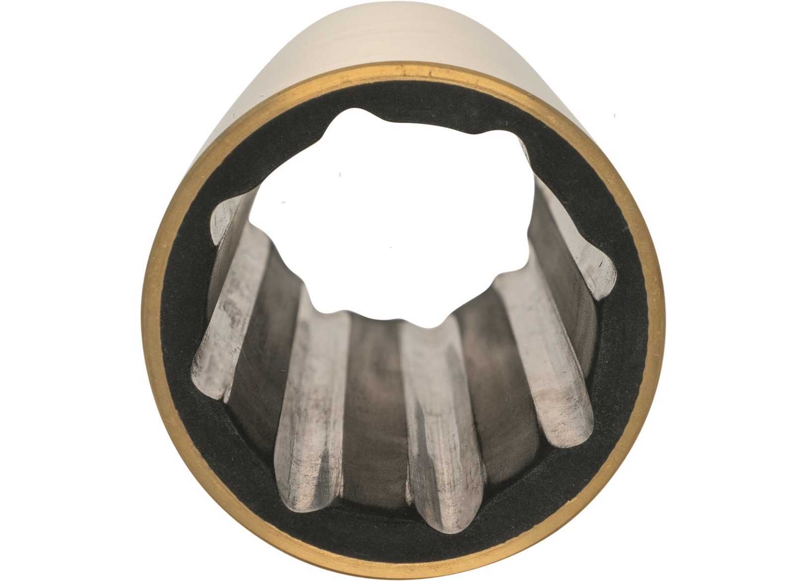 Boccole Idrolub per assi portaelica ø interno e ø esterno metrico. Guscio in Ottone, interno in Gomma con canali assiali.