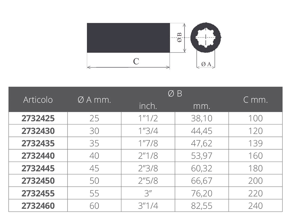 Boccolaidrolubrificata, serie universale in resina e gomma, Ø interno metrico, Ø esterno in pollici