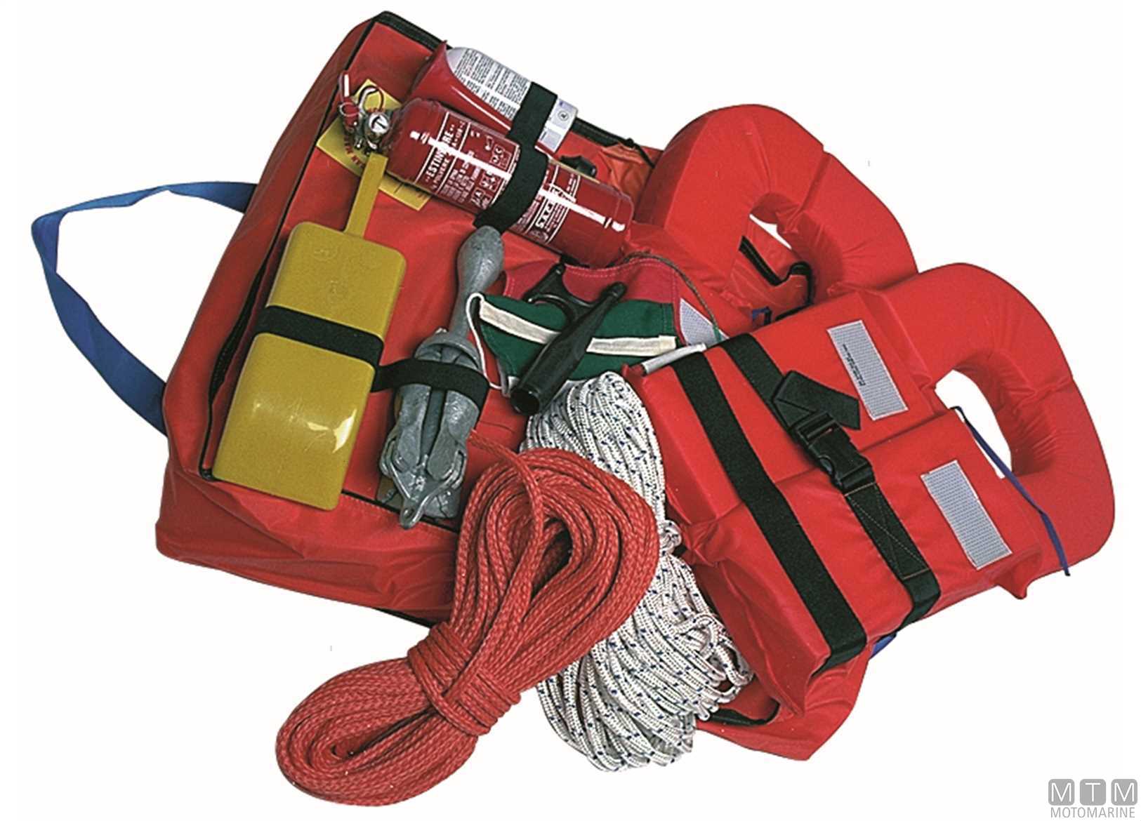 Borsa con dotazioni di sicurezza per 4 o 6 persone entro le 6 o 12 miglia dalla costa. Comprende: 4 o 6 cinture di salvataggio da 100N o 150N / 1 ancora da 2,5 o 4,0 Kg / 1 cima ancora 30 mt / 1 cima salvagente 30 mt / 1 bandiera / 1 gancio d'accosto / 1 sessola / 1 estintore / 1 avvisatore acustico. I segnali di soccorso 3020016 vanno ordinati a parte.