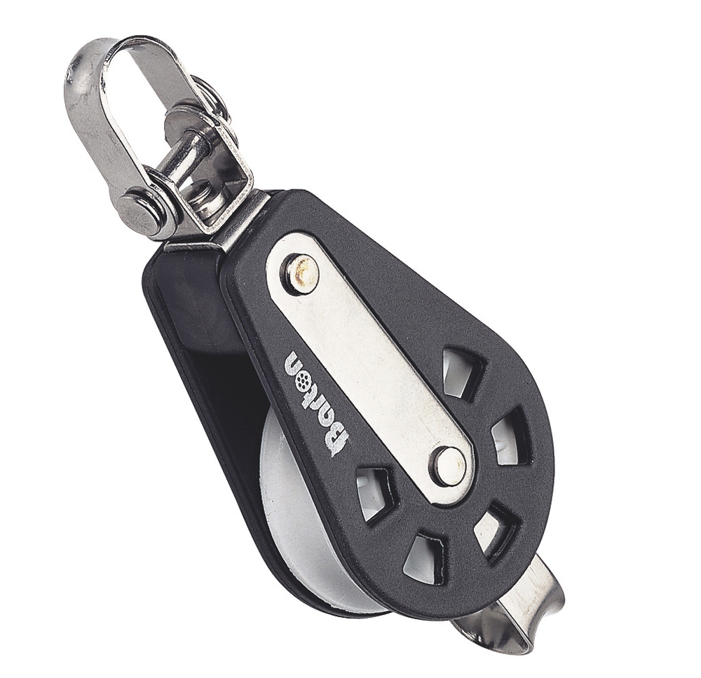 Bozzello singolo girevole con arricavo, Ø cima mm. 8, max carico di lavoro kg. 370 carico di rottura kg. 740, dimensioni puleggia mm.35 lunghezza mm.97
