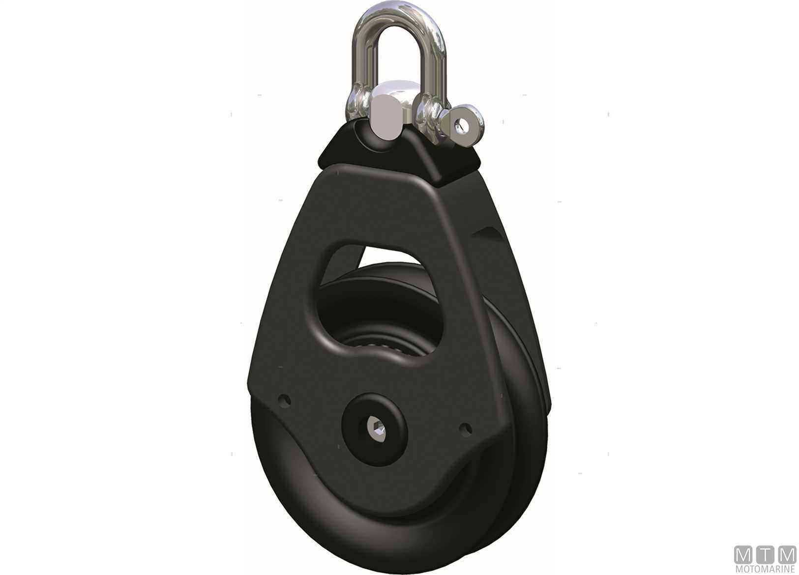 Bozzello molto robusto senza perni e viti con telaio in Alluminio Ossidato nero e teflonato in un unico pezzo. Con pulegge in resina su doppio cuscinetto a sfere che non necessita di lubrificazione. Compreso di testa girevole e grillo in Acciaio Inox ad alta resistenza. L'uso dei migliori materiali garantisce leggerezza e carichi di lavoro elevati.