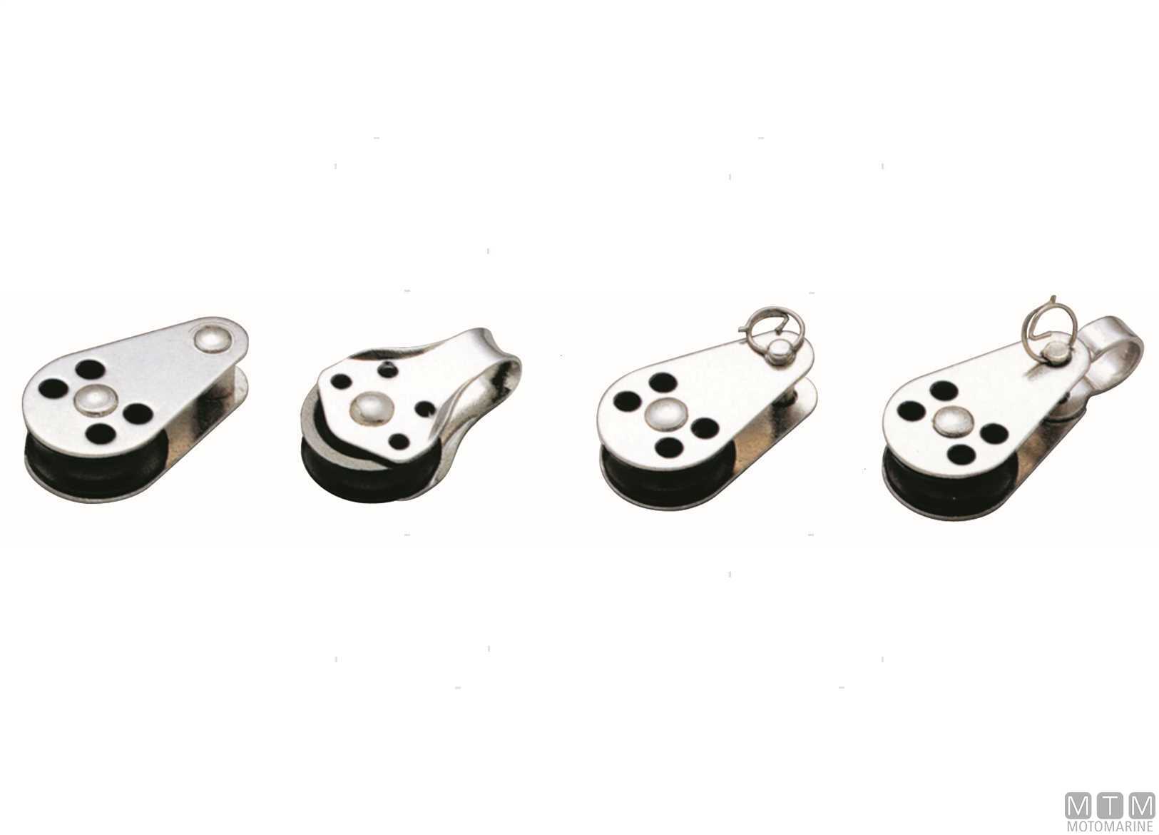 Bozzelli per scottine fino a 6 mm. Cassa in Acciaio Inox, puleggia D20 mm.