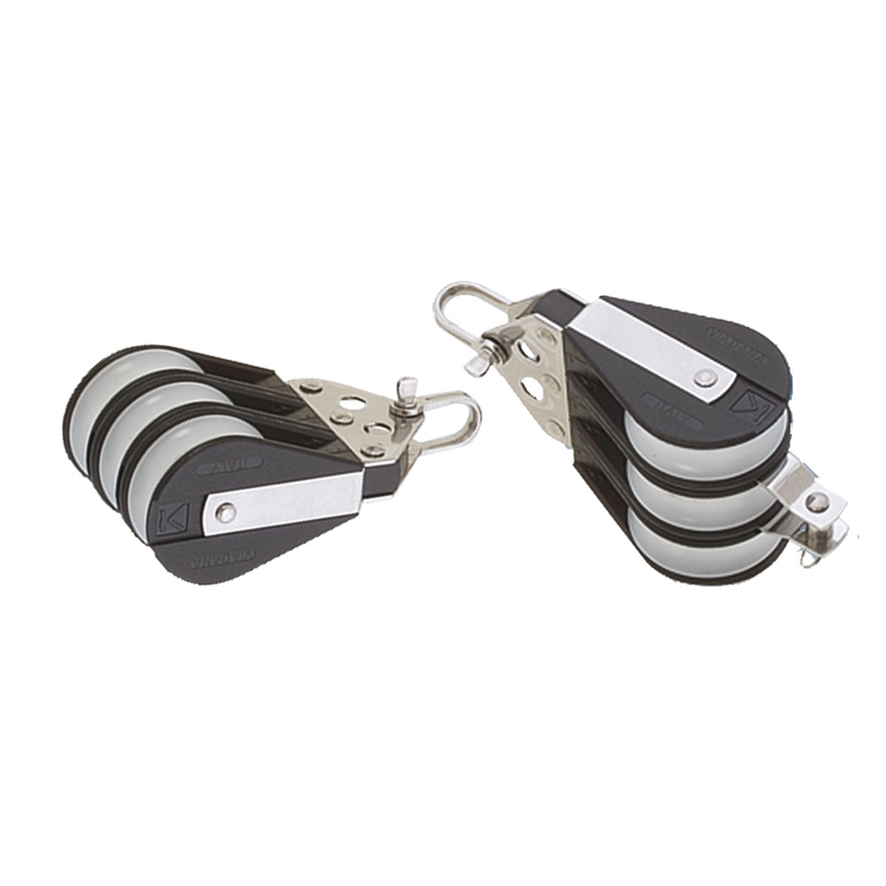 Bozzelli rinforzati senza sfere che permettono l'utilizzo di scotte fino a 10 mm. Le guance e la puleggia sono in delrin mentre le parti metalliche sono costruite in acciaio inox aisi 316.