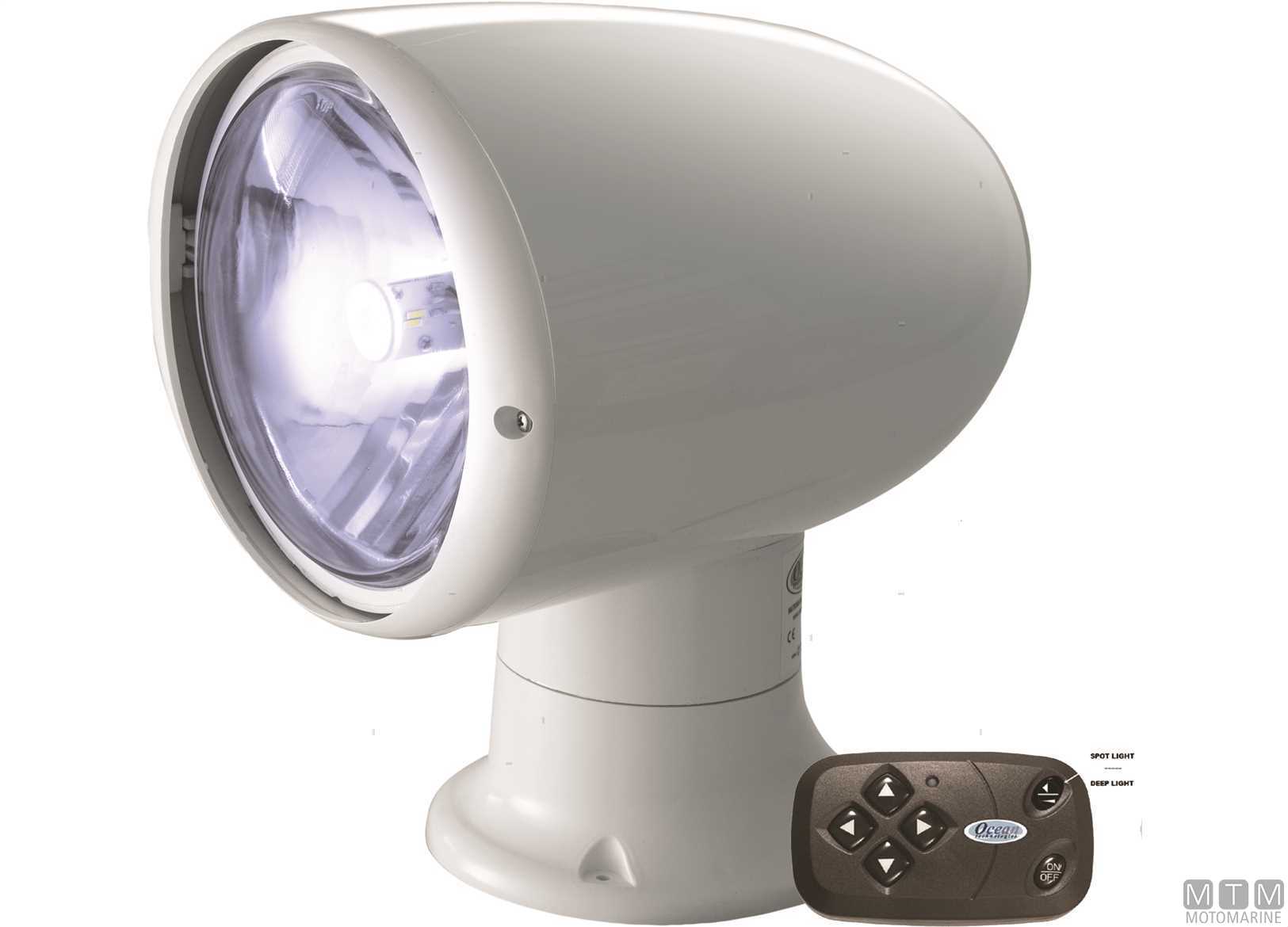 Faro LED orientabile con pannello di controllo cablato impermeabile. Corpo stagno in Polimero antiurto resistente raggi UV. Con due modalità di fascio luce, diffusa e profonda. Dimensioni 230 x 185 x H210 mm. ↵Consumo 25/15W (12/24V). Comando wireless opzionale con ricevitore e trasmettitore plug and play fino a 35m. Se installato, sostituisce il pannello controllo cablato. Per mantenere entrambi, è necessario acquistare il pannello doppia stazione.