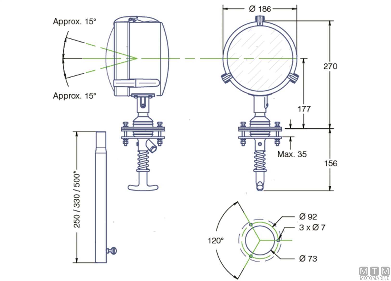 Faro professionale LED 10-32V orientabile dall'interno con cassa in Acciaio Inox AISI316 lucidato a specchio. Tutti i componenti sono antivibranti, amagnetici e resistenti alla corrosione. Fascio di luce concentrata spot con portata fino a 600 metri.