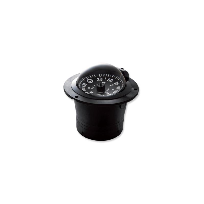 Ø apparente 4’ (100 mm.). Sospensione cardanica interna. Compensazione incorporata. Illuminazione di serie 12 V. Schermo antiriflesso. Rosa nera con gradazione bianca di 5°, normale, installazionead incasso orizzontale
