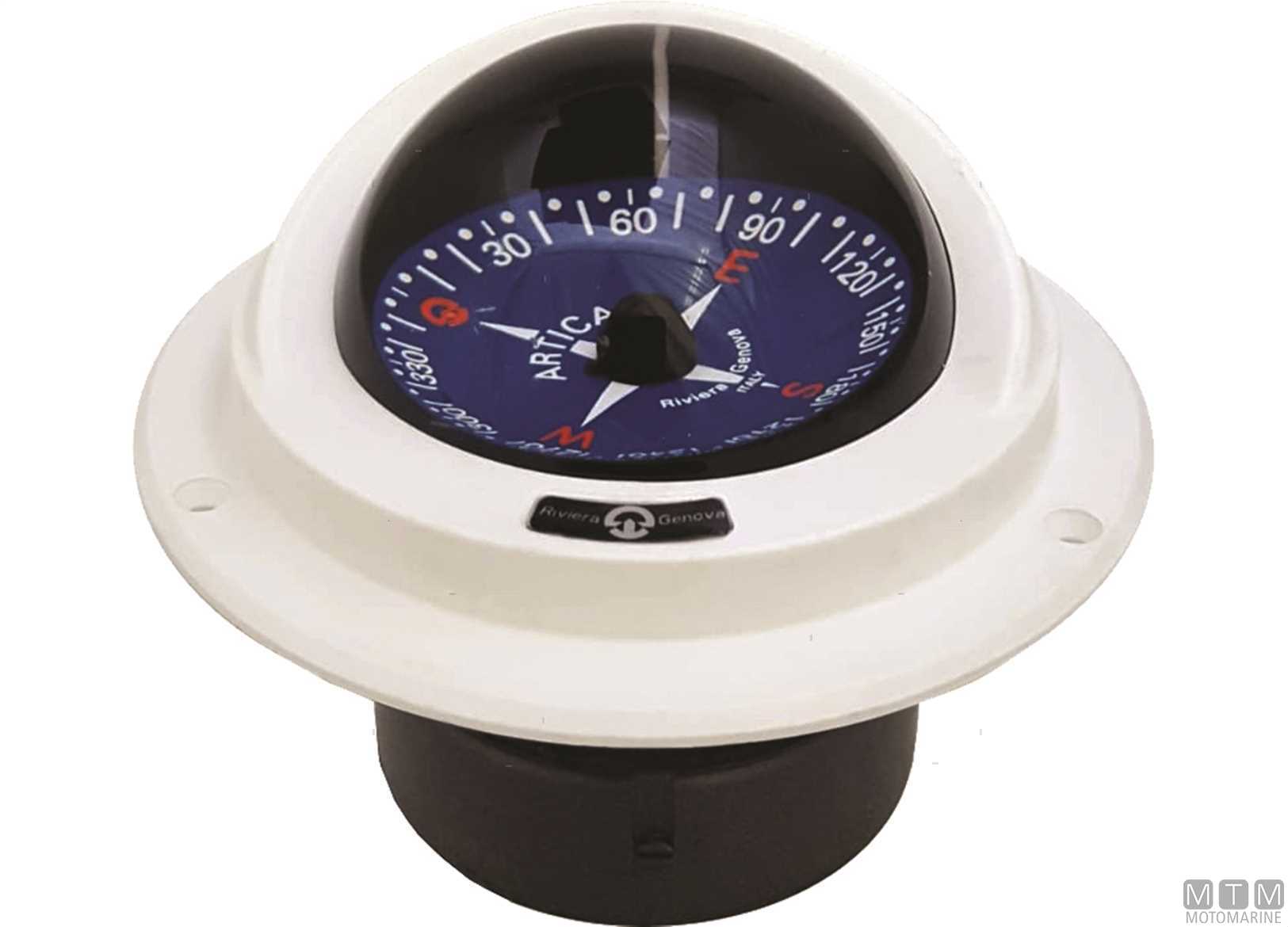 Bussola a incasso Artica BA1 a incasso con schermo antiriflesso. • Compensazione incorporata • Sospensione semicardanica interna • Illuminazione: 12V di serie (24V a richiesta )• Diametro apparente da 2” 3/4 - 70 mm • Lettura posteriore (divisione rosa 5°) • Per imbarcazioni normali e alta velocità • Garanzia 3 anni * Certificazione MED (se necessaria) da richiedere prima dell'acquisto