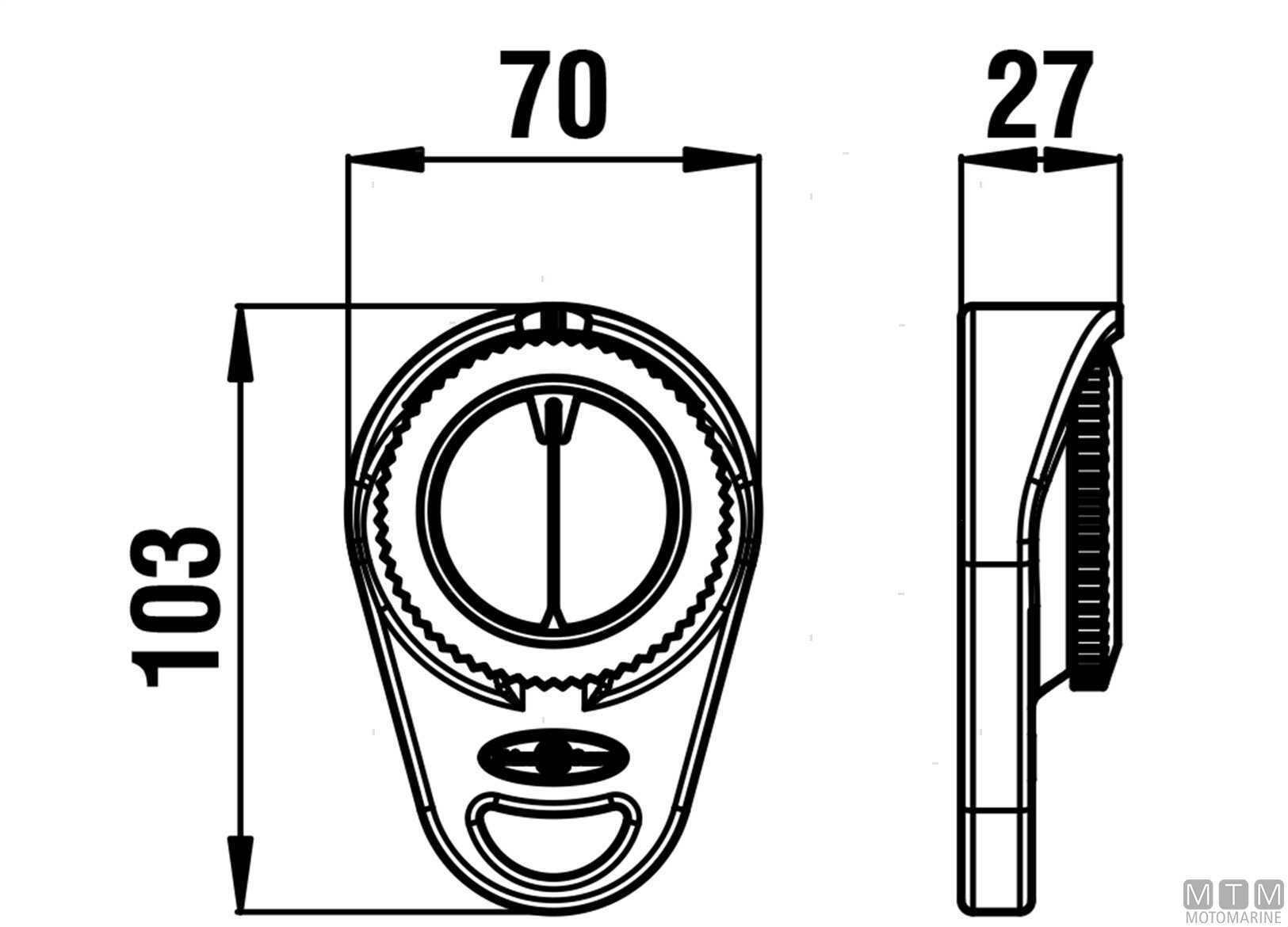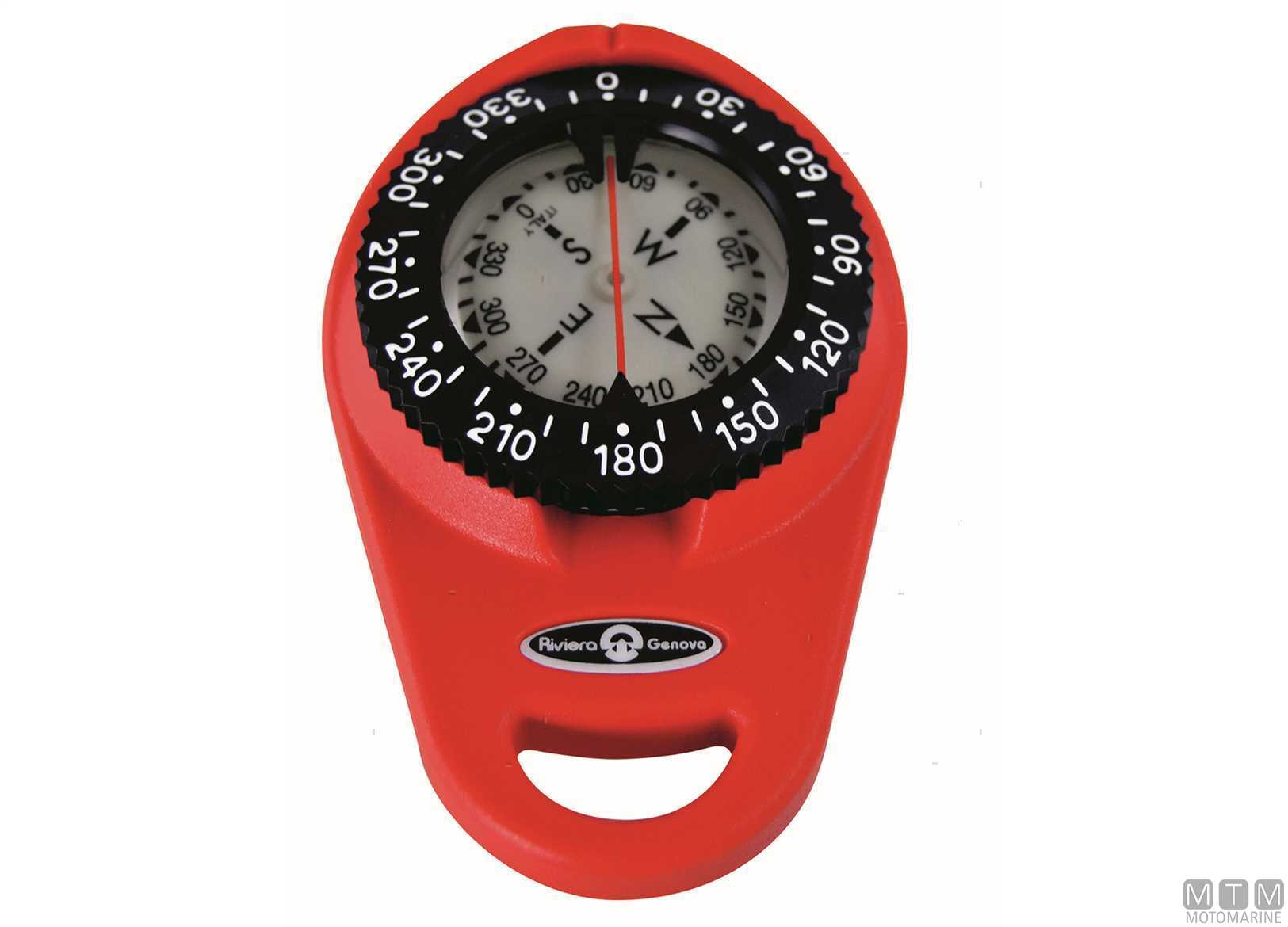 Bussola da rilevamento galleggiante Riviera Orion.↵ • Diametro apparente da 1"7/8 (-50mm)↵ • Lettura frontale (divisione rosa 10° )↵• Galleggiante - Resistente agli urti↵ • Ghiera girevole - Rosa luminescente↵ • Dimensioni: 100x70x27 mm