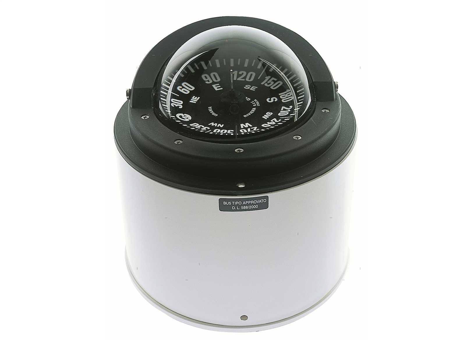 Bussola a chiesuola Urania BU5 con schermo antiriflesso. Versione normale e alta velocità per barche veloci. • Compensazione incorporata • Sospensione cardanica interna • Illuminazione: 12V di serie (24V a richiesta ) • Diametro apparente da 4” - 100 mm • Lettura posteriore (divisione rosa 5°) • Per imbarcazioni normali e alta velocità • Approvata per imbarcazioni da diporto e da lavoro fino a 150t • Garanzia 3 anni * Certificazione MED (se necessaria) da richiedere prima dell'acquisto
