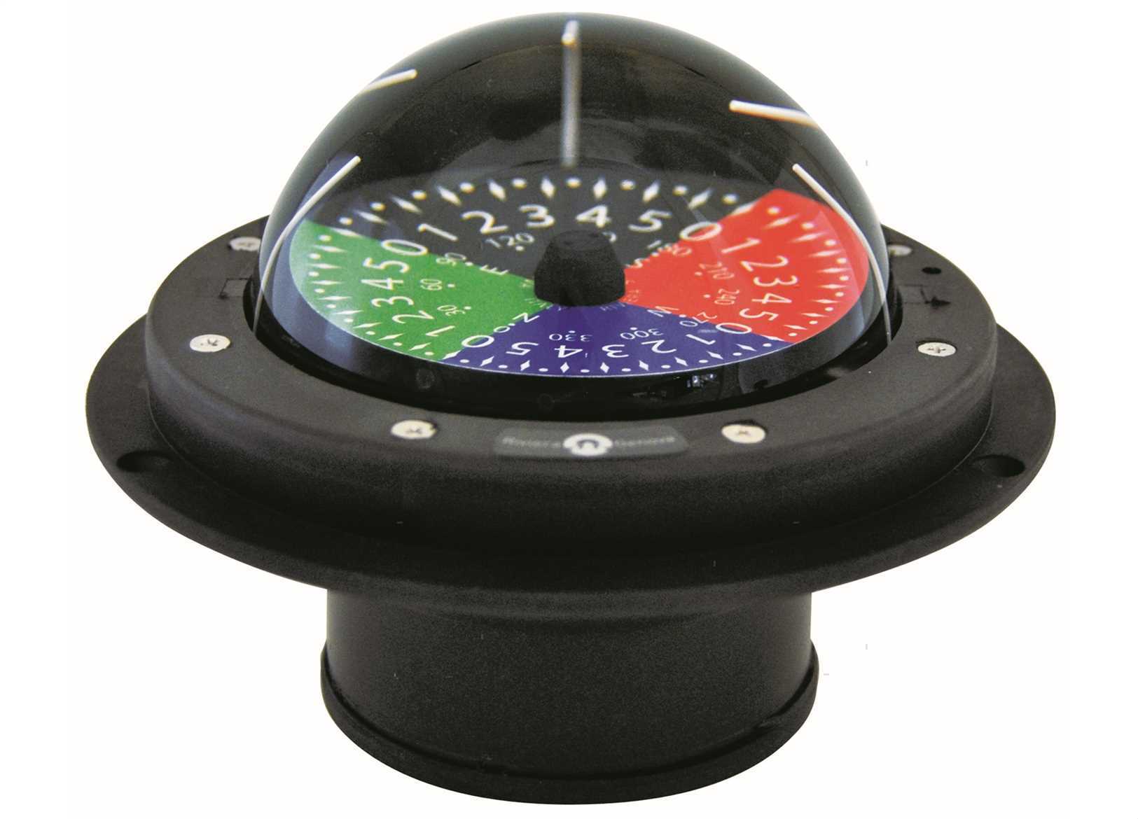 Bussola a incasso con rosa tattica. Compensazione incorporata. Sospensione cardanica interna. Appositamente concepita con rosa tattica da 3"(-80 mm) con una sola cifra per le andature a vela di un percorso olimpico.