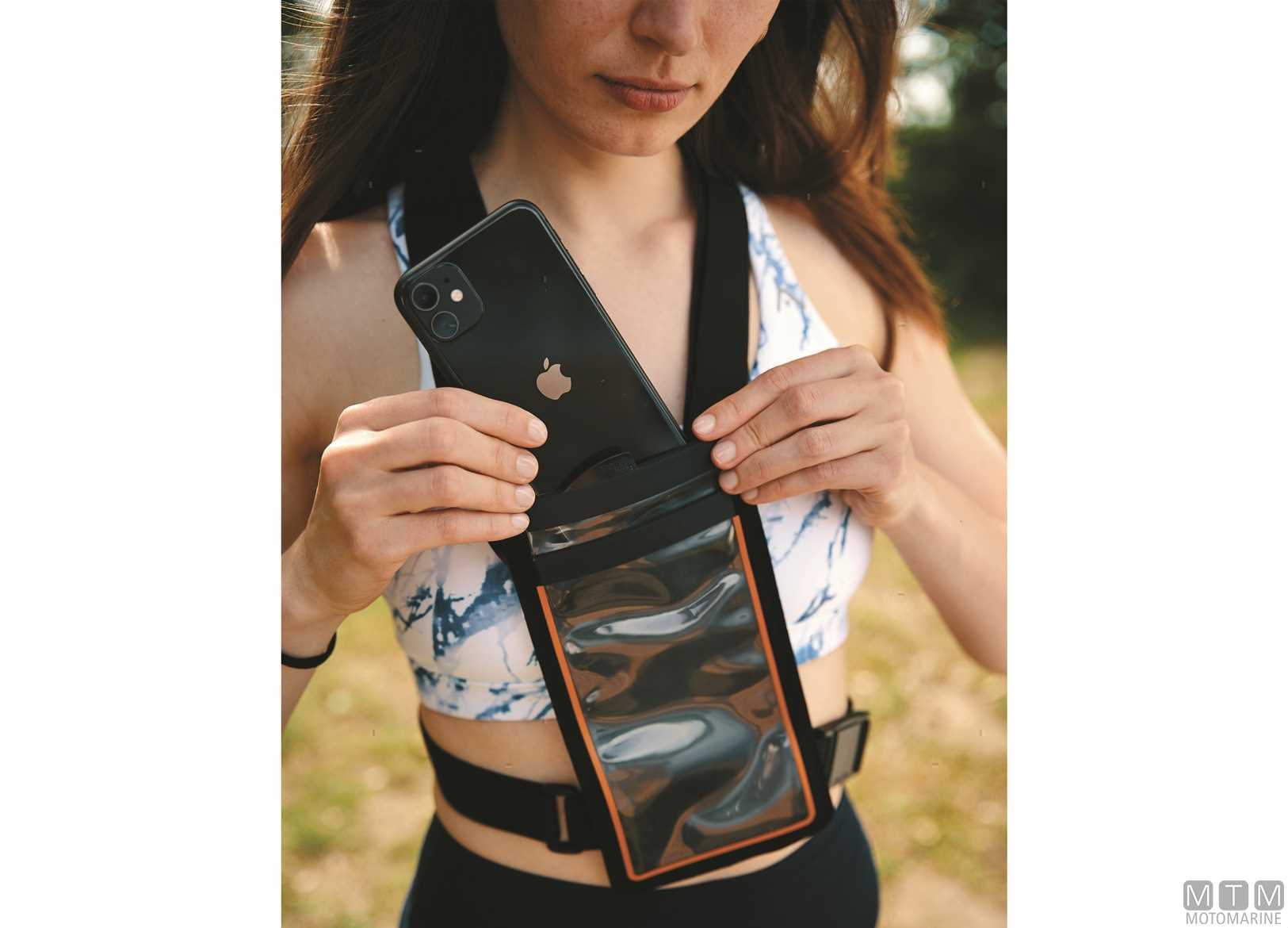 Busta impermeabile da torace con tecnologia brevettata Gooper®, sistema di chiusura ermetica automatica della borsa che permette di tenere il telefono lontano dalla polvere e dall'umidità durante le attività all'aperto. Con cinghie regolabili per una vestibilità ideale, sgancio rapido con fibbia magnetica FIDLOCK e possibilità di usare lo smartphone attraverso la custodia.