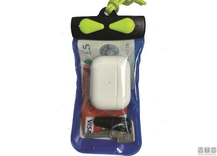 Custodia stagna fino a 10m di profondità per proteggere gli effetti personali come carte di credito, banconote, chiavi e monete. Completa di laccio.