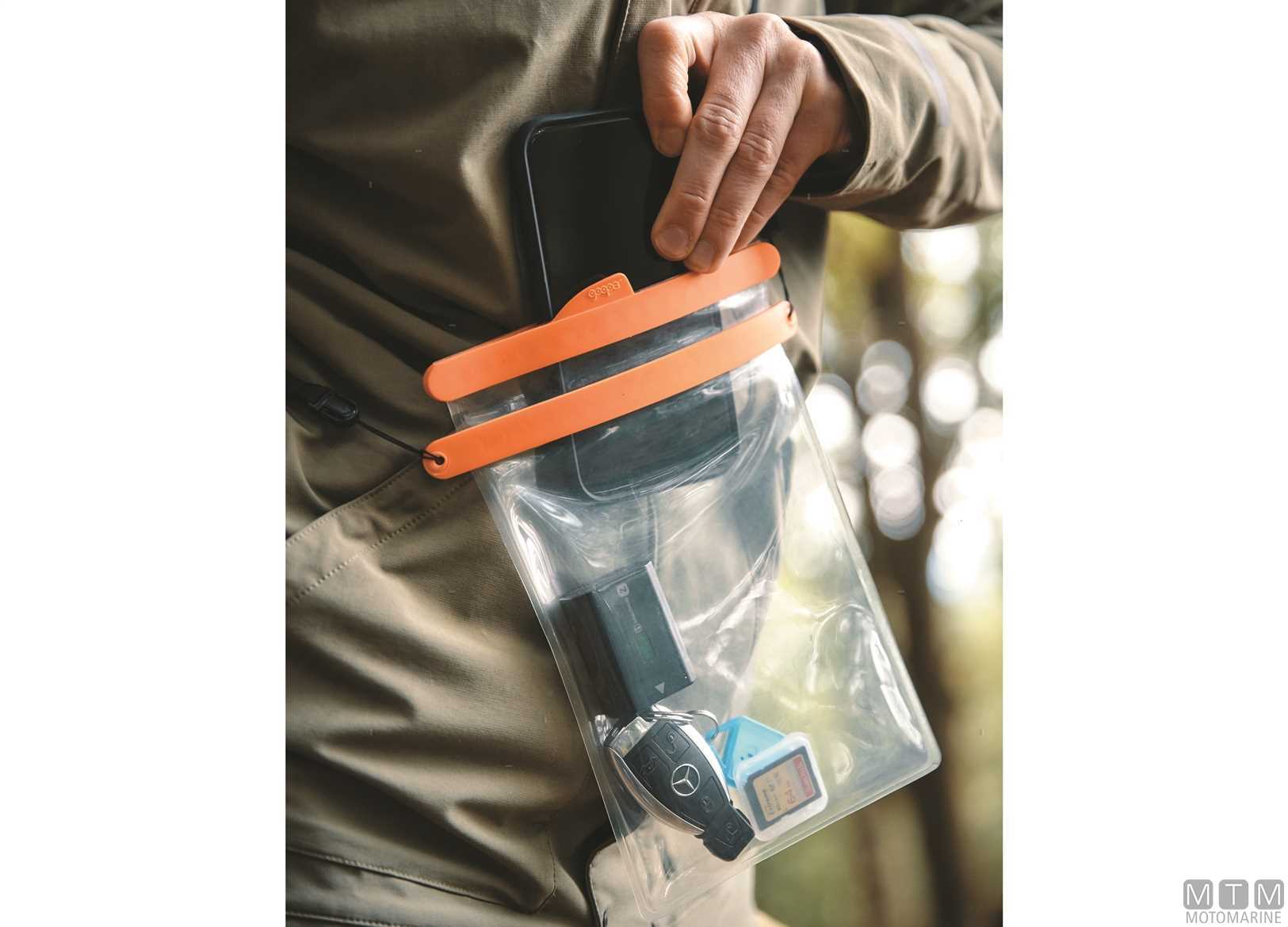 Custodia stagna fino a 30 m di profondità con tecnologia brevettata Gooper®, sistema di chiusura ermetica automatica della borsa che permette di tenere al sicuro tutti gli effetti personali riposti al suo interno. Grazie al materiale high-tech trasparente è possibile utilizzare lo smartphone all'interno senza problemi. Completa di laccio dim 400 x 9 mm.
