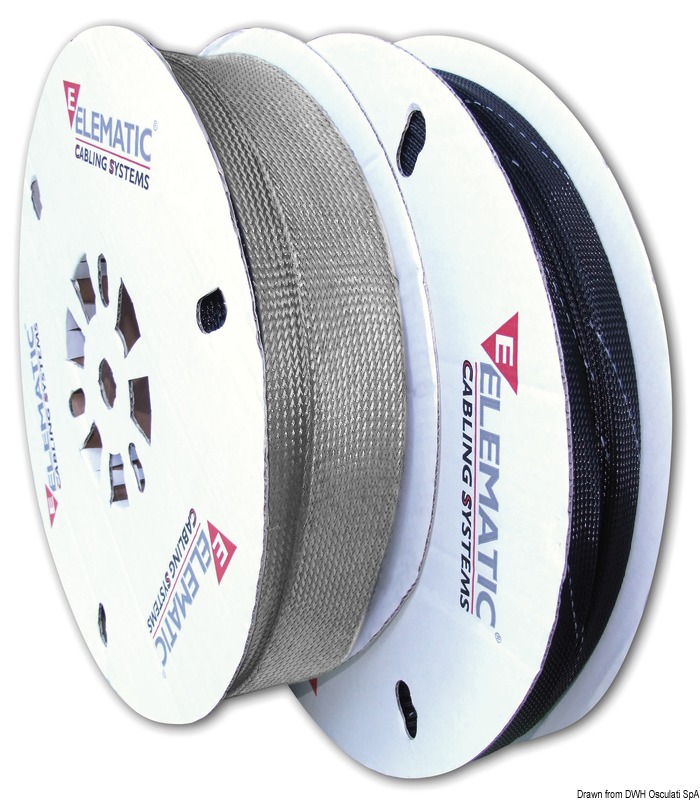 Fabbricata in poliestere grigio, adatta per raggruppare e proteggere i cavi elettrici. Si possono far uscire uno o più cavi allargando le maglie in qualsiasi punto.