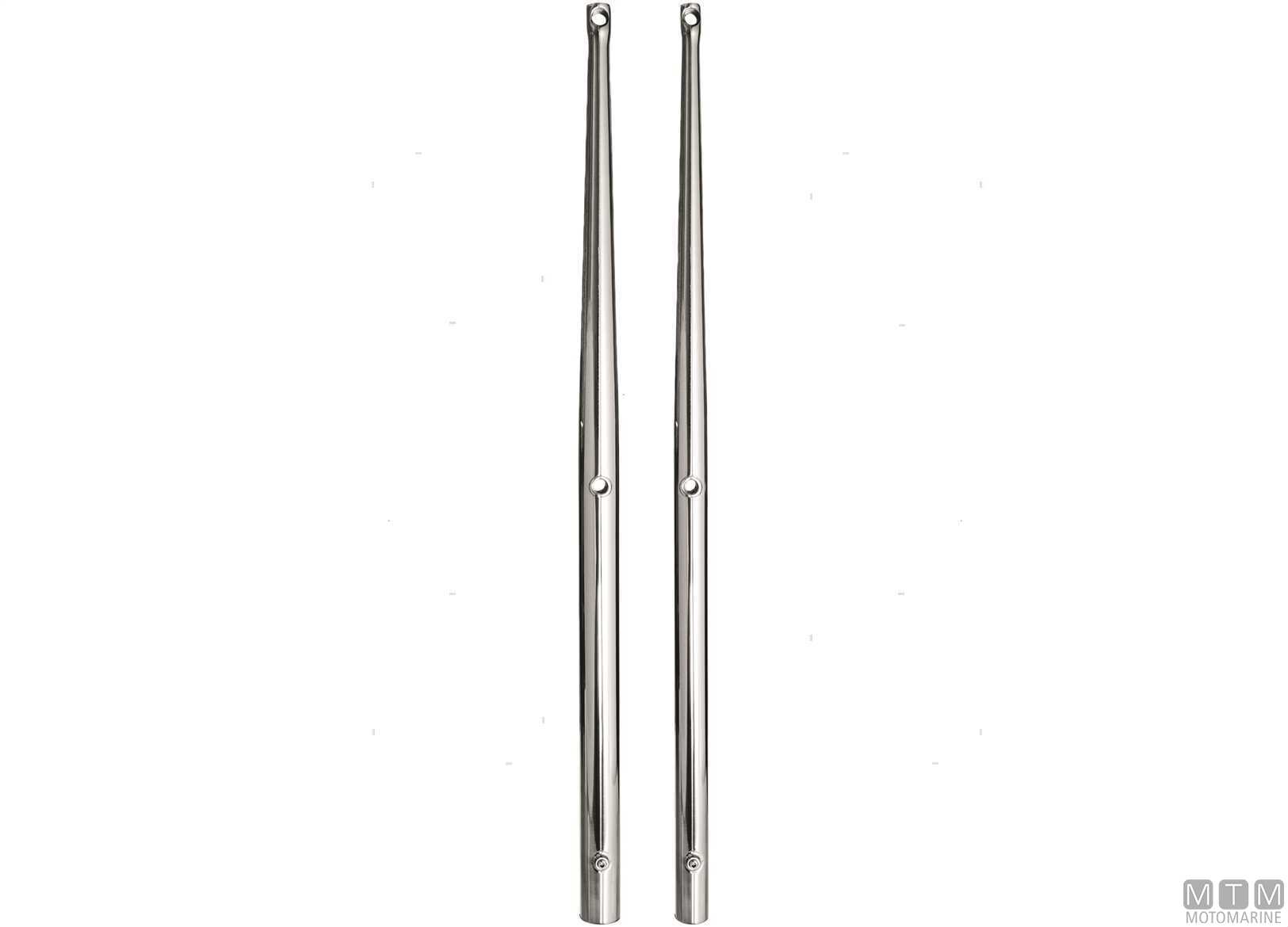 Candelieri in Acciaio Inox AISI316 lucidato a specchio. Si montano su base a perno con fermo vite esagonale che permette la rotazione e l'allineamento del candeliere sulla battagliola.